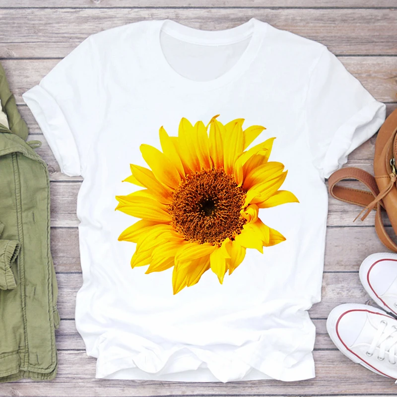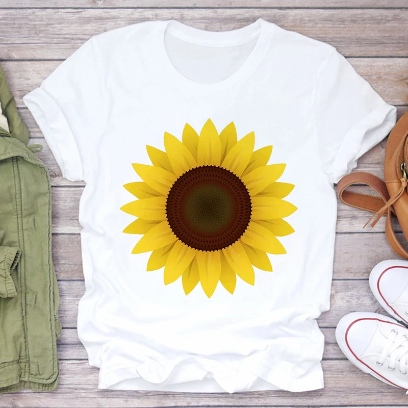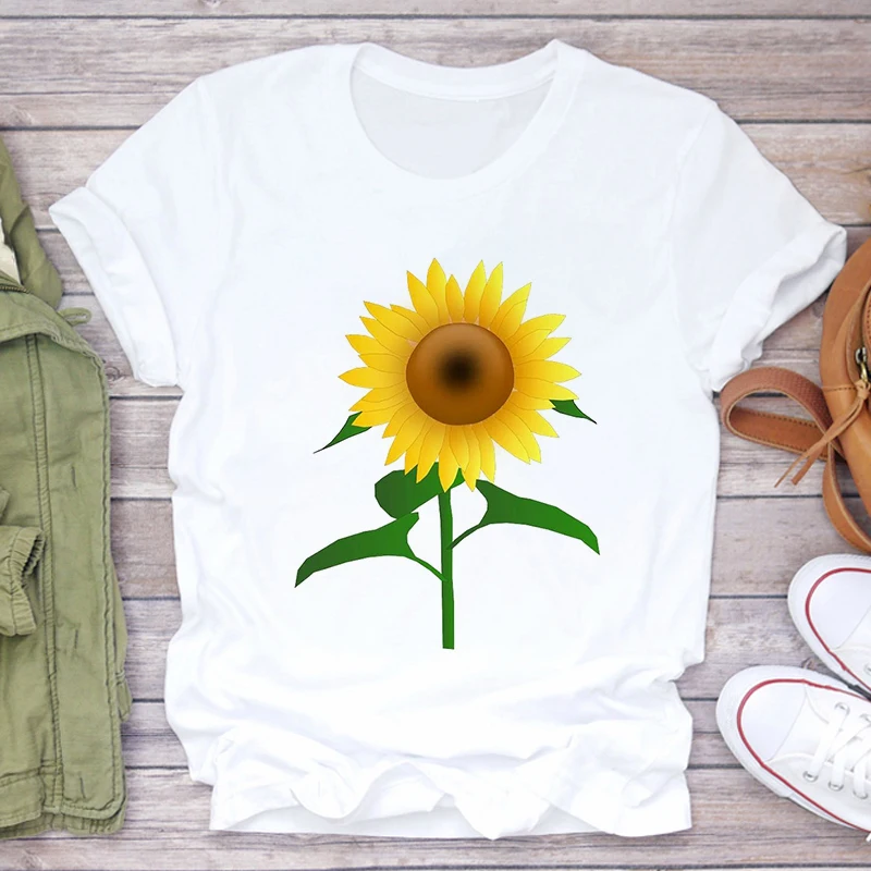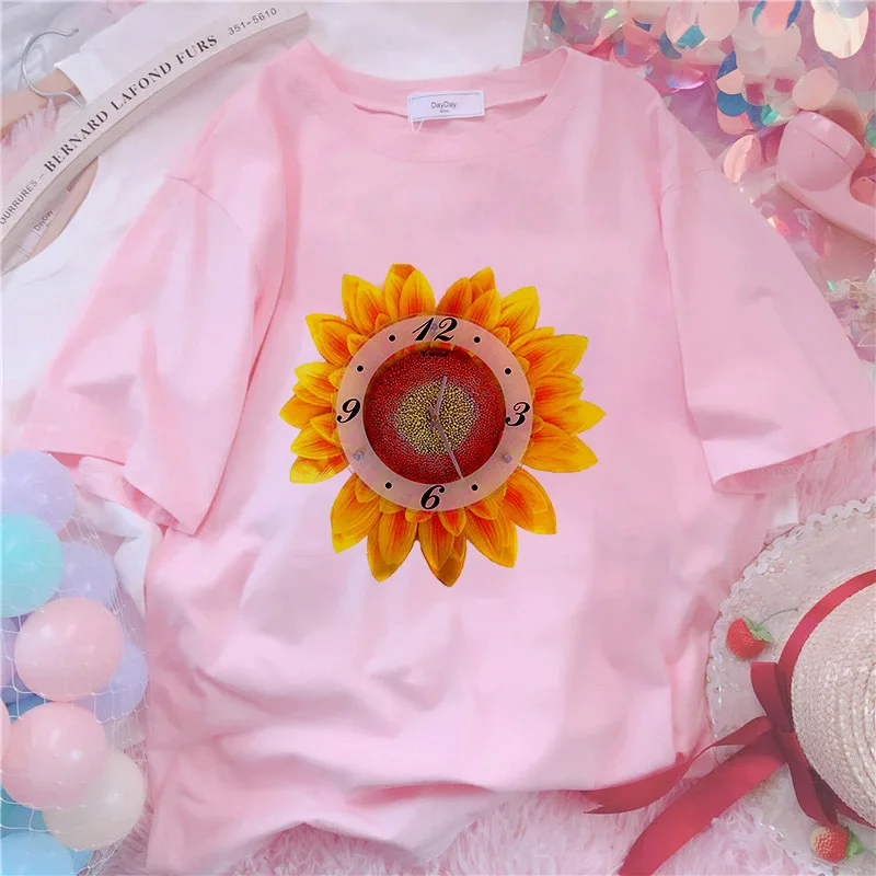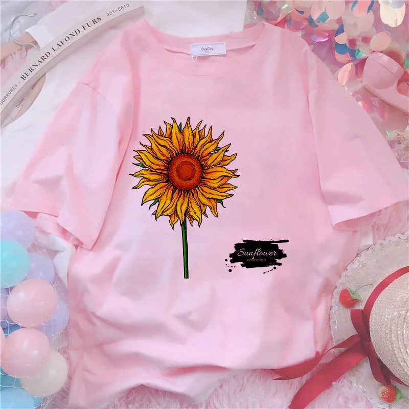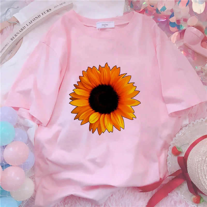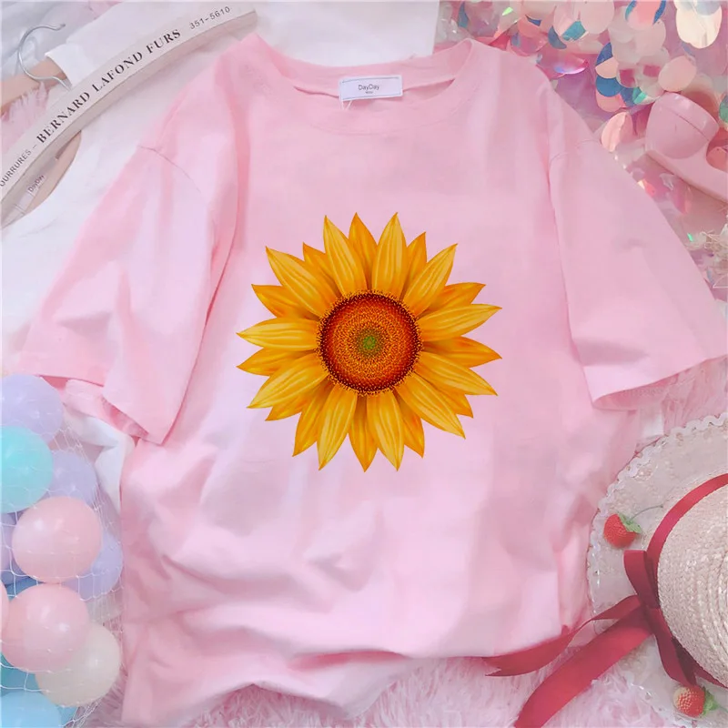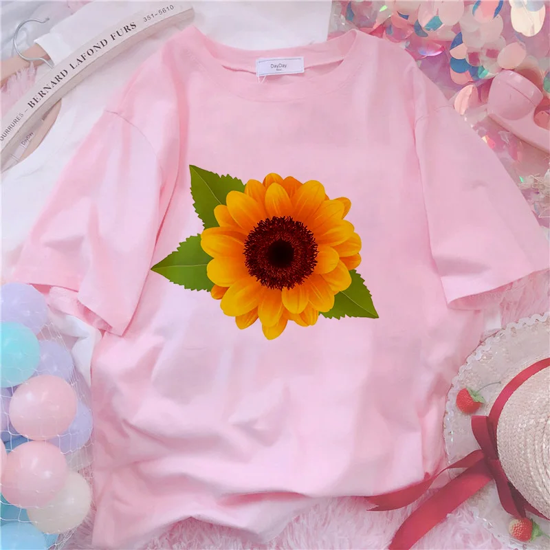 Футболка женская, с принтом подсолнуха, белая, розовая, лето 2021