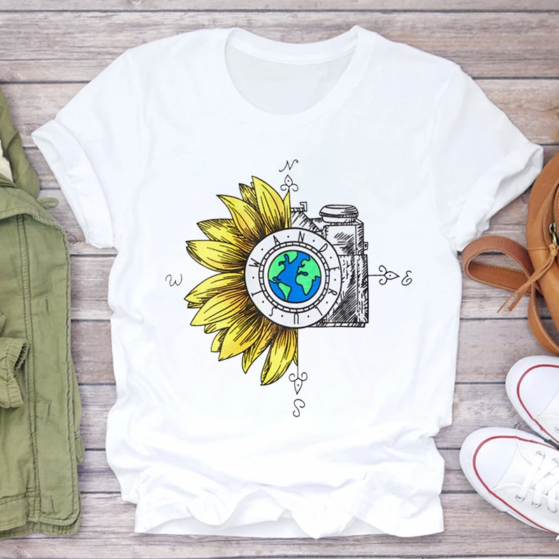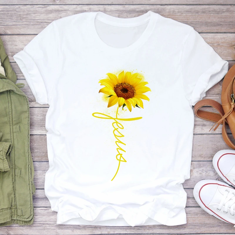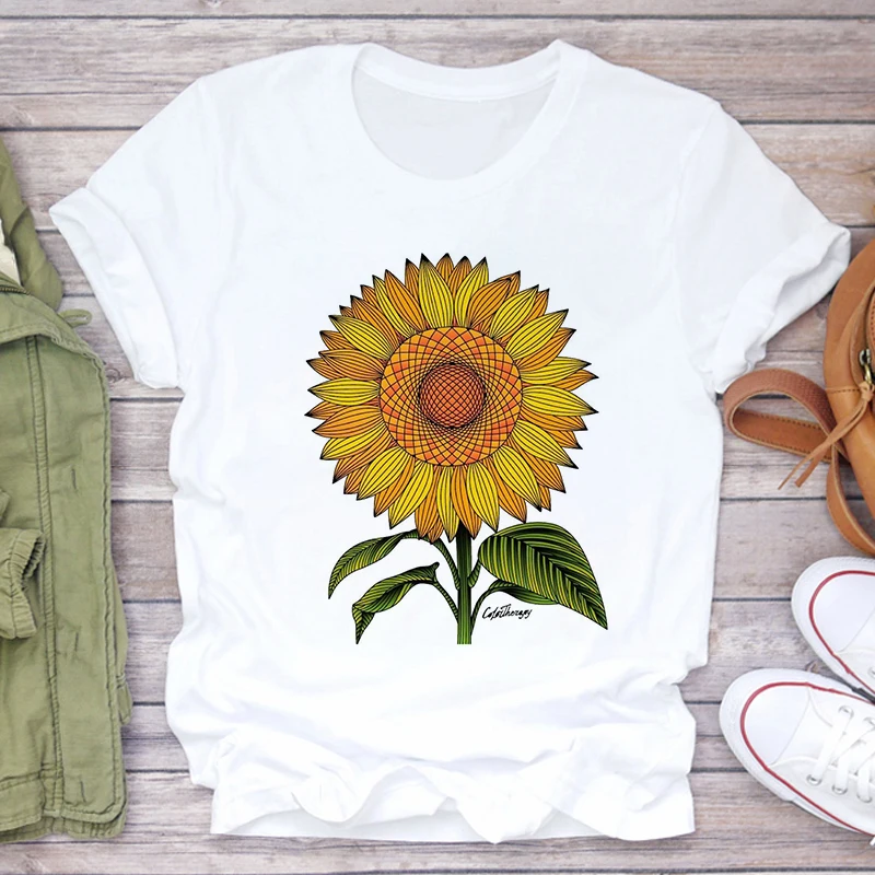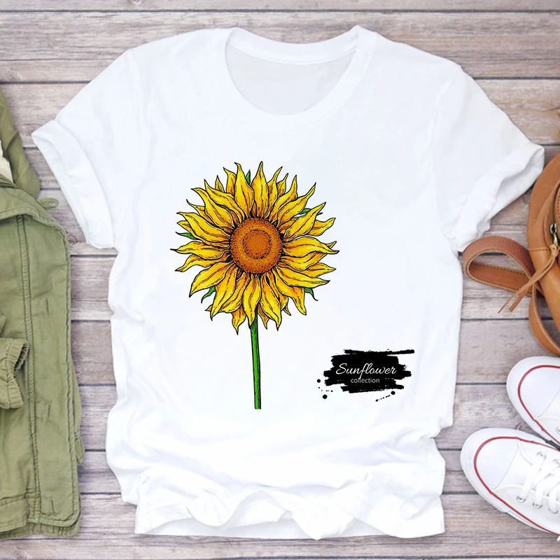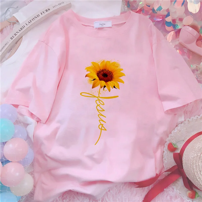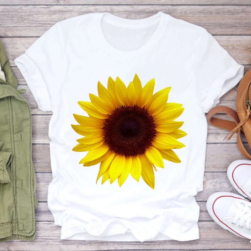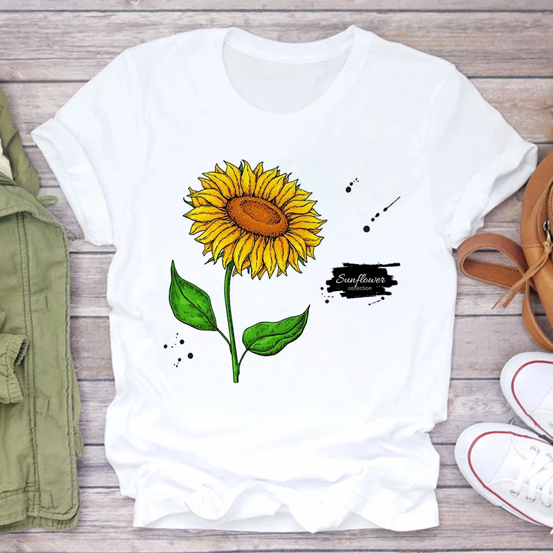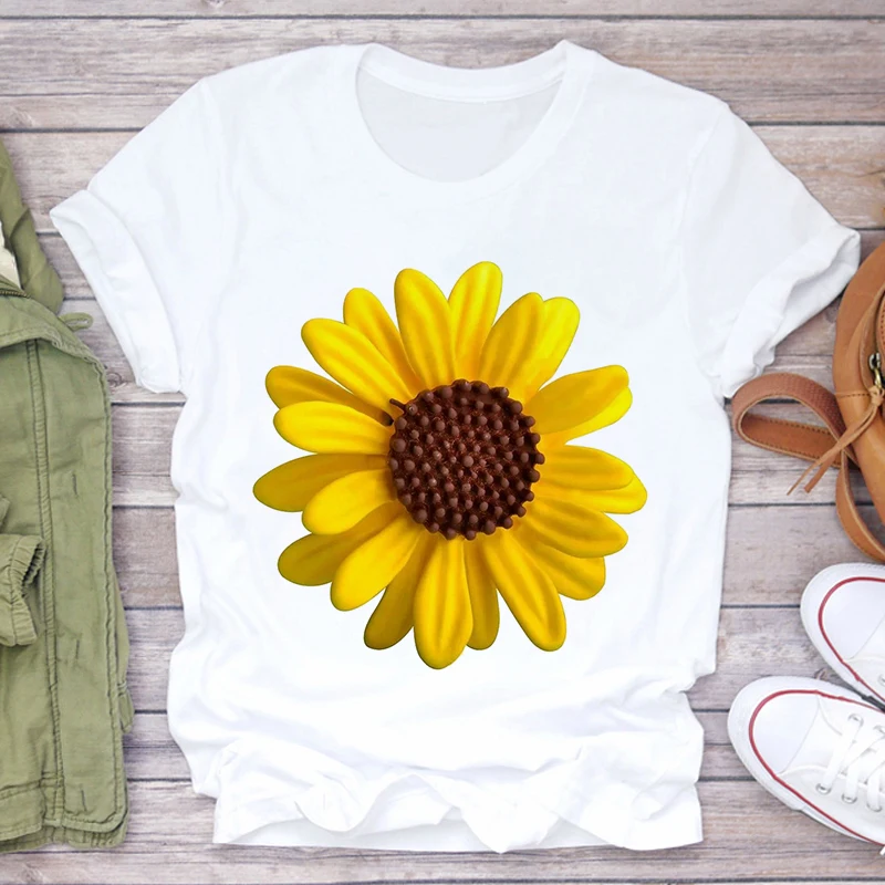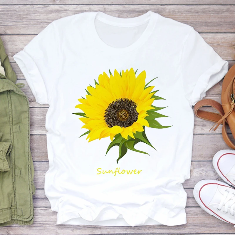 Футболка женская, с принтом подсолнуха, белая, розовая, лето 2021