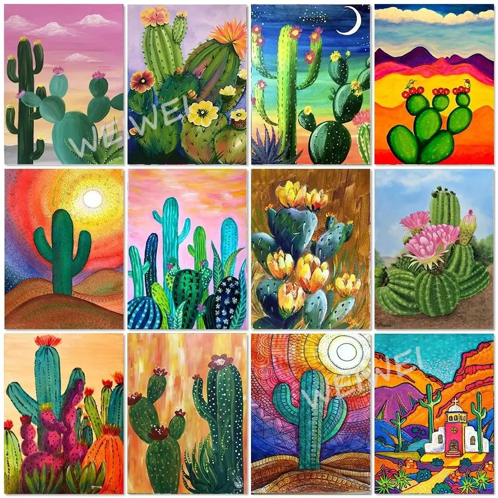 5D Diy Солнце Луна пустыня Кактус Цветок алмазная живопись растение Алмазная вышивка крестиком набор мозаики из страз рукоделие