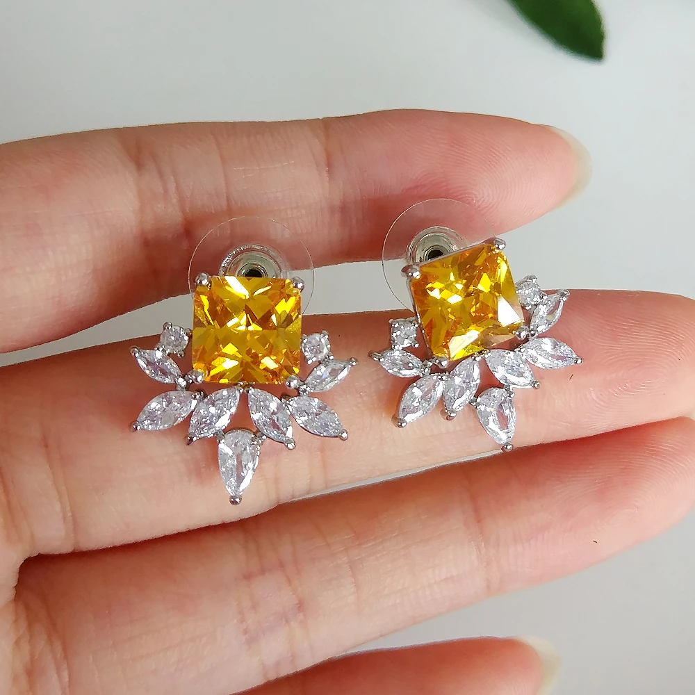 ZAKOL роскошный элегантный квадратный желтый AAA серьги с цирконием кубической огранки Свадебная вечеринка невесты, серьги, ювелирное изделие для женщин EP3026