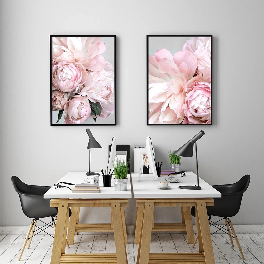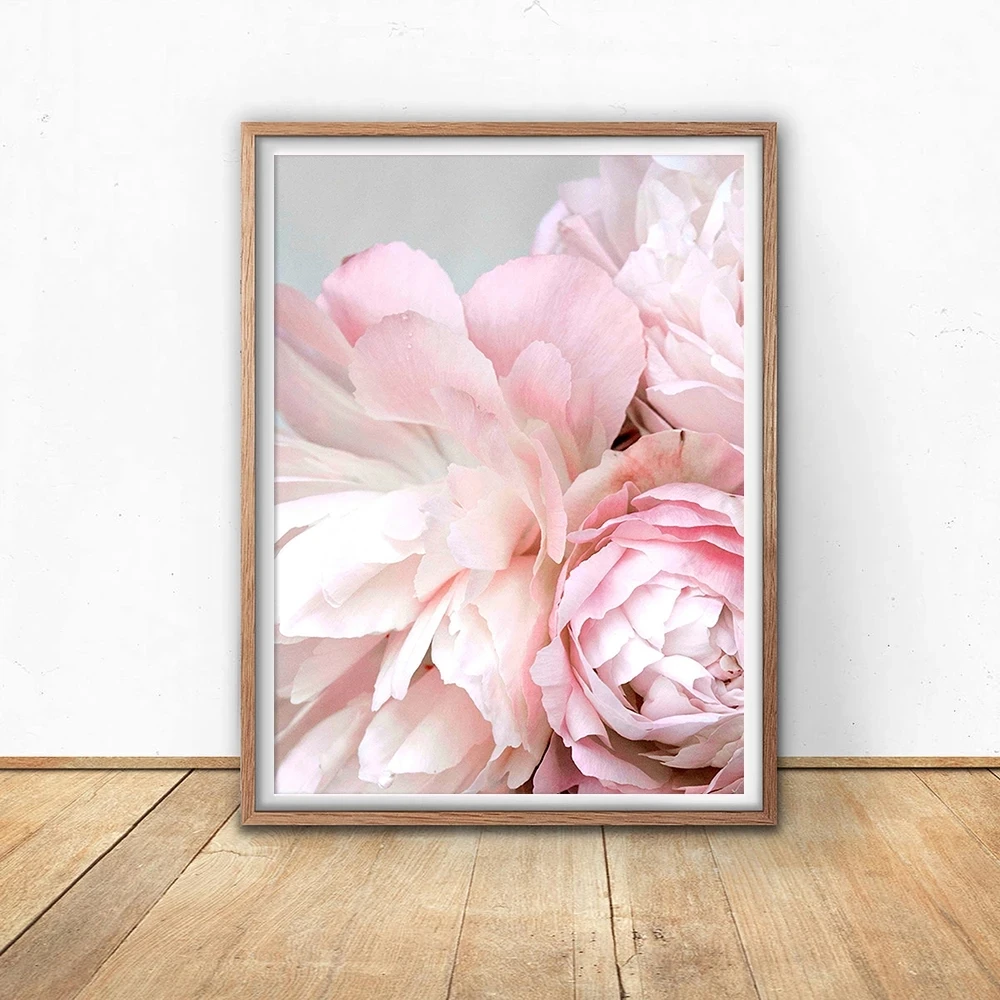 Настенный постер с пионами в скандинавском стиле, Минималистичная Картина на холсте с принтом цветов, скандинавский Декор для гостиной