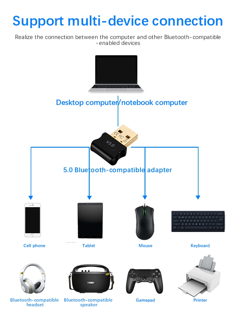 Новый беспроводной 5,0 Bluetooth-совместимый адаптер USB передатчик для ПК компьютера ноутбука наушников аудио принтера приемник передачи данных