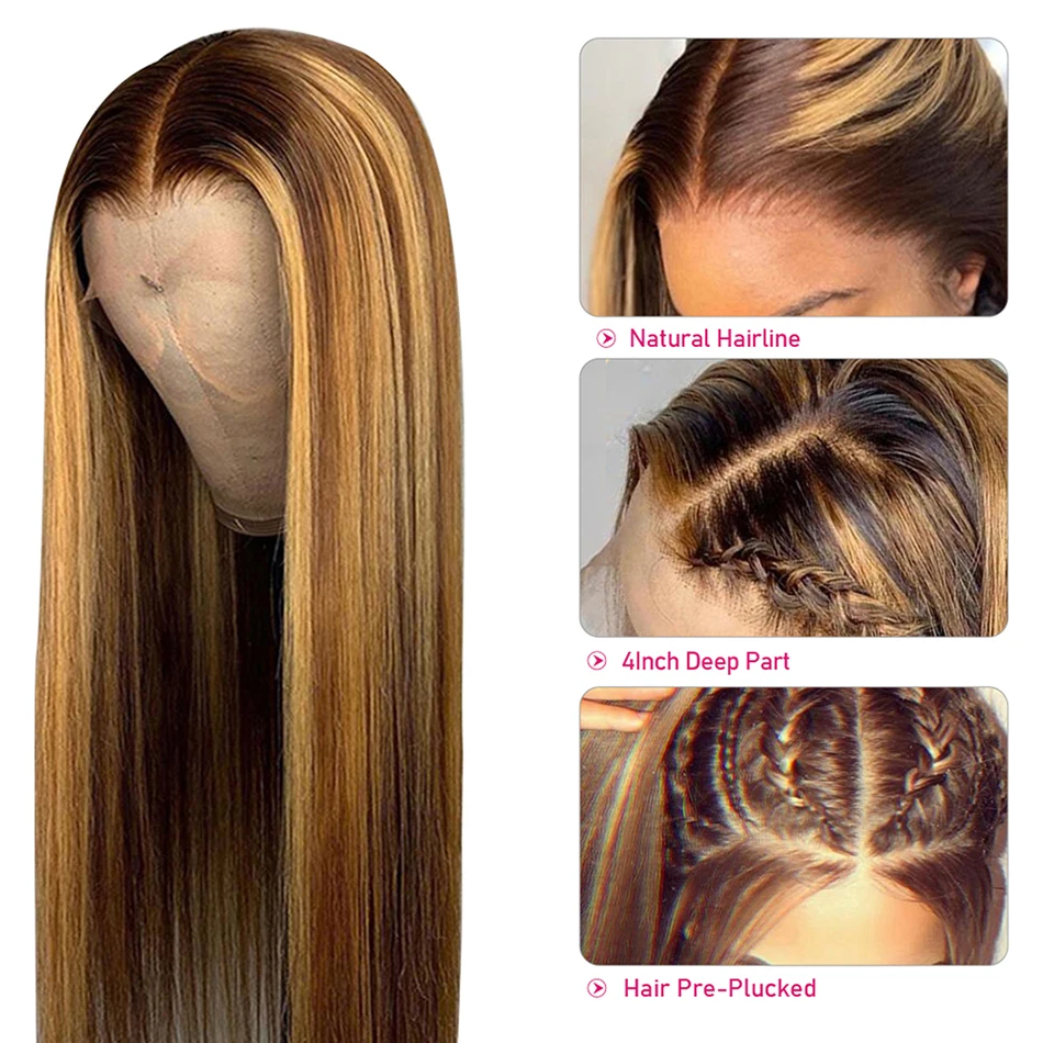 Mshere медово-блонд коричневый Омбре кружевные передние парики 13x4 перуанские Remy человеческие волосы парики хайлайтер цвет 427 предварительно выщипанные шиньоны