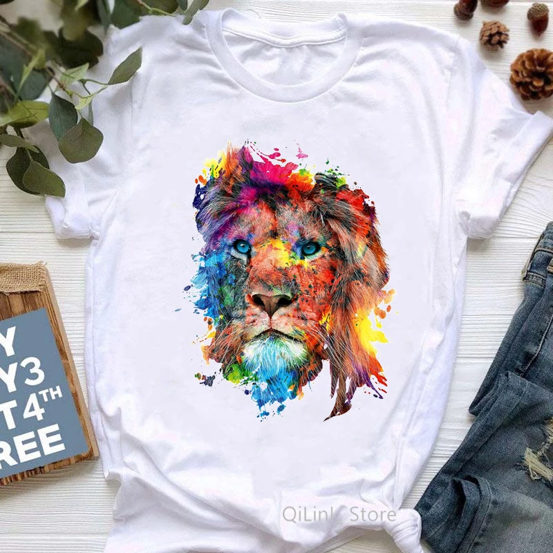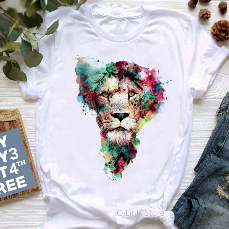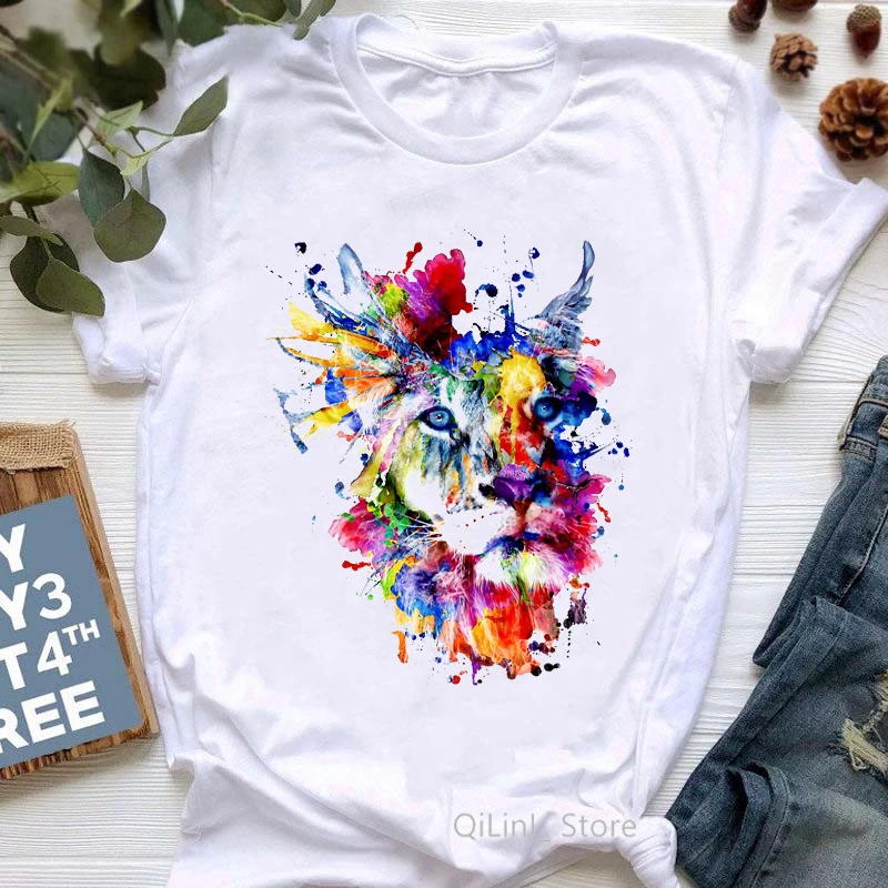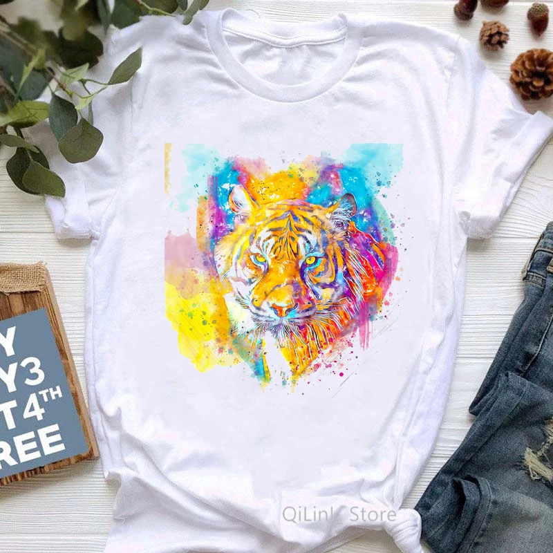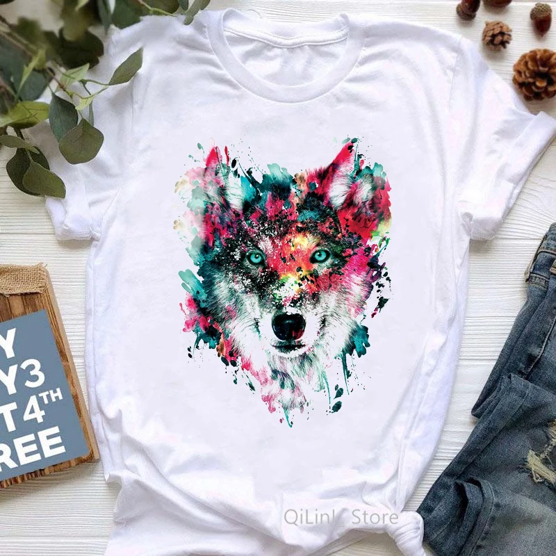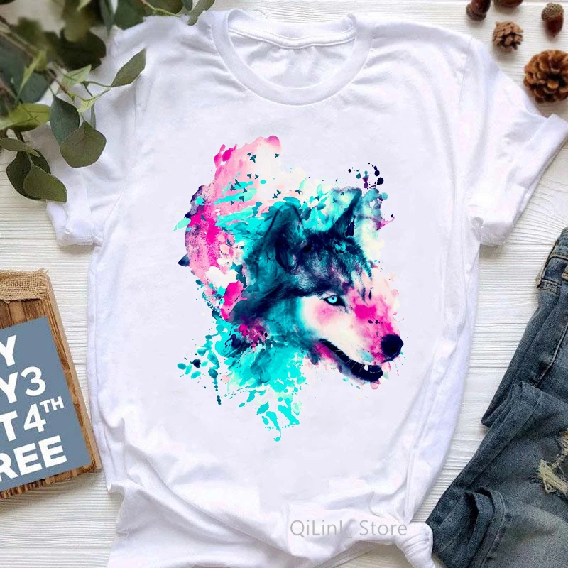 Женская одежда 2022, футболка с акварельным принтом волкальваСовыоленятигра, хип-хоп, Женская Эстетическая одежда, топ для гиков, крутая уличная одежда