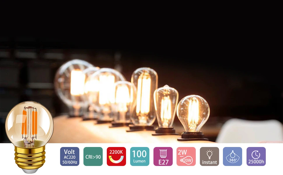 Страна: FR Emitting Color: G40 2W Color: warm white 2200K Number of LED Chip: E27 220V Support Dimmer: Yes Доставка: Standard Shipping 24.11.2022
