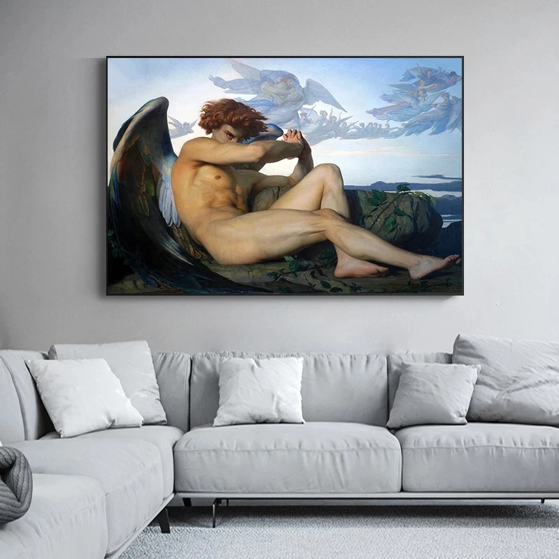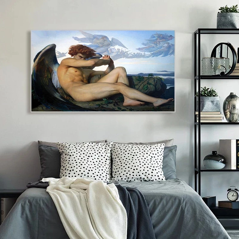 Картина на холсте Александр кабанель, опавший ангел, картина маслом, постер на холсте, христианская религиозная Настенная картина для украшения дома