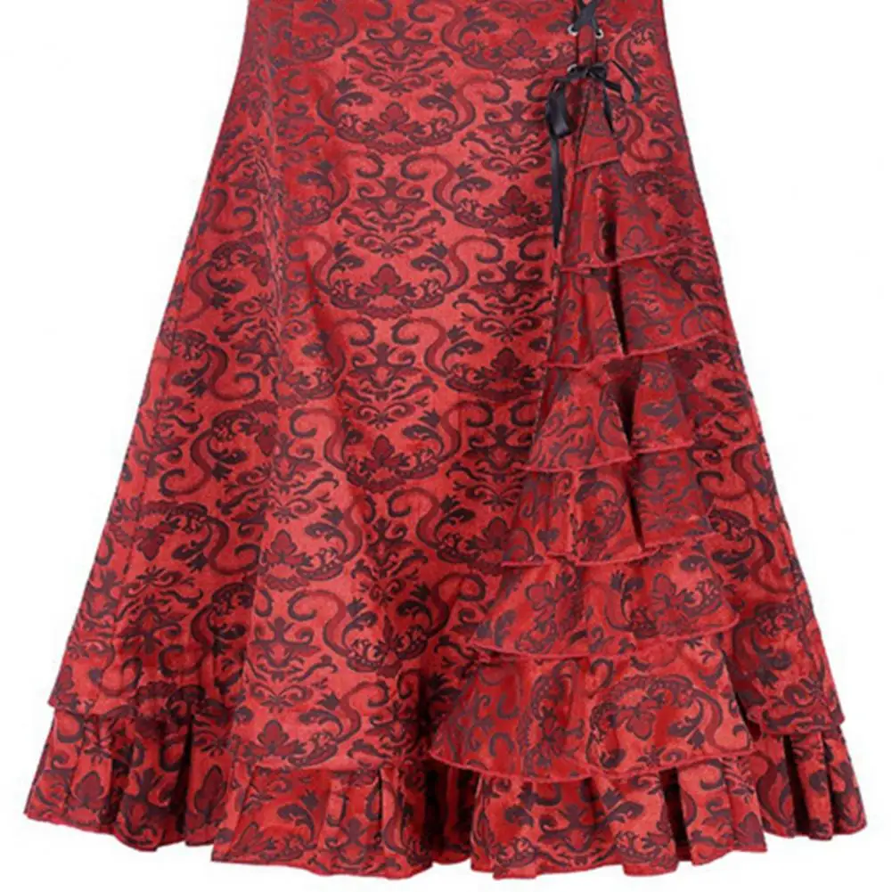 Женские длинные юбки на Хэллоуин, юбка с высокой талией, Жаккардовая юбка-годе, Женская винтажная облегающая юбка в стиле панк с оборками для фестиваля