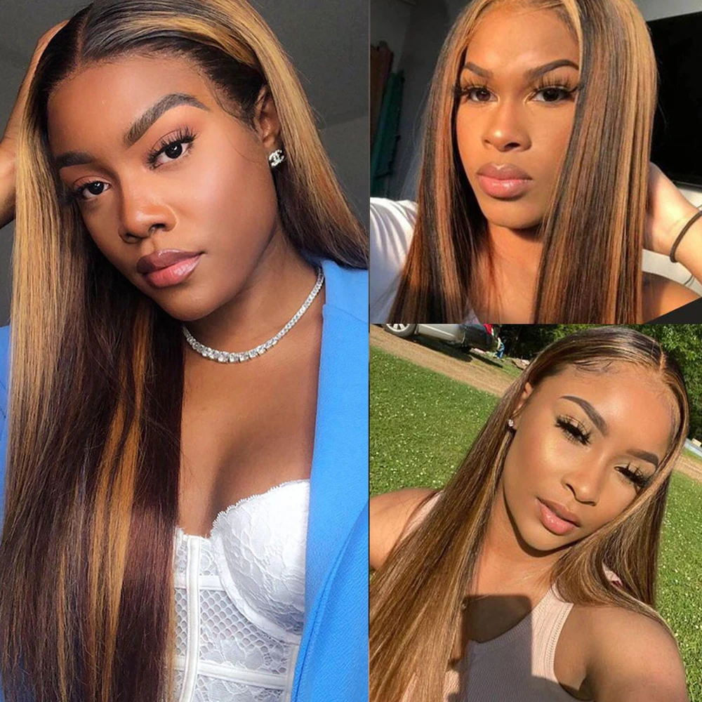 Прямой фронтальный парик 200% Реми P427 хайлайтер парик 13x4 прозра...