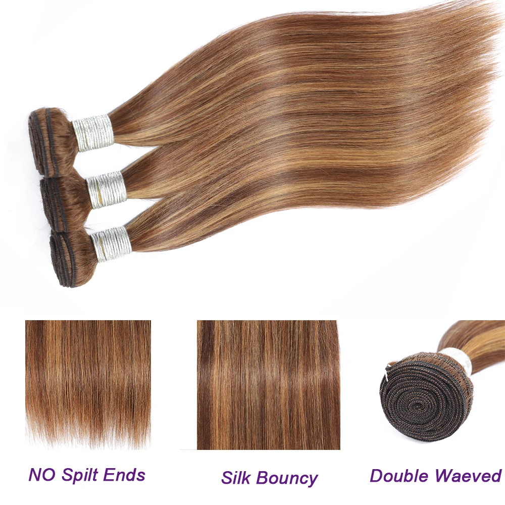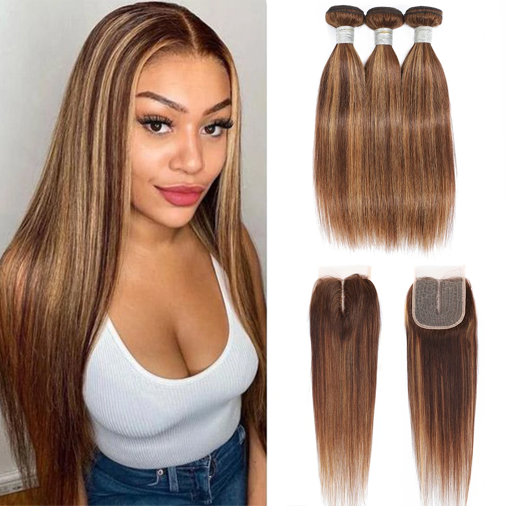Хайлайтер Омбре пряди с застежкой 28 30 дюймов прямые коричневые Человеческие волосы Remy Прозрачная Кружевная фронтальная кость прямые волнистые волосы