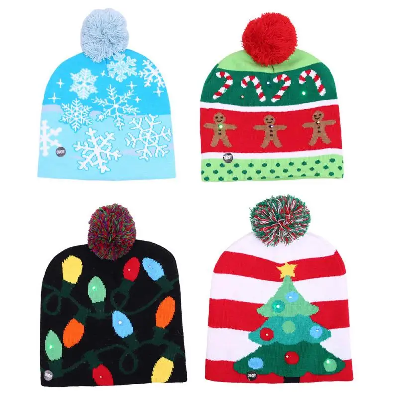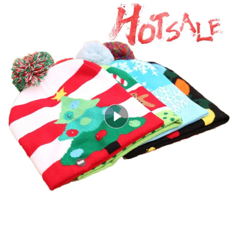 Новинка, светодиодные рождественские шапки, свитер, вязаная шапка, Рождественская шапка с Санта-Клаусом, зимняя шапка для детей и взрослых, теплая шапка для рождественской вечеринки