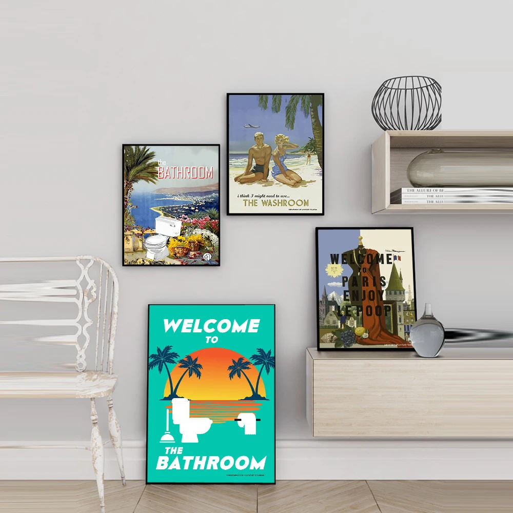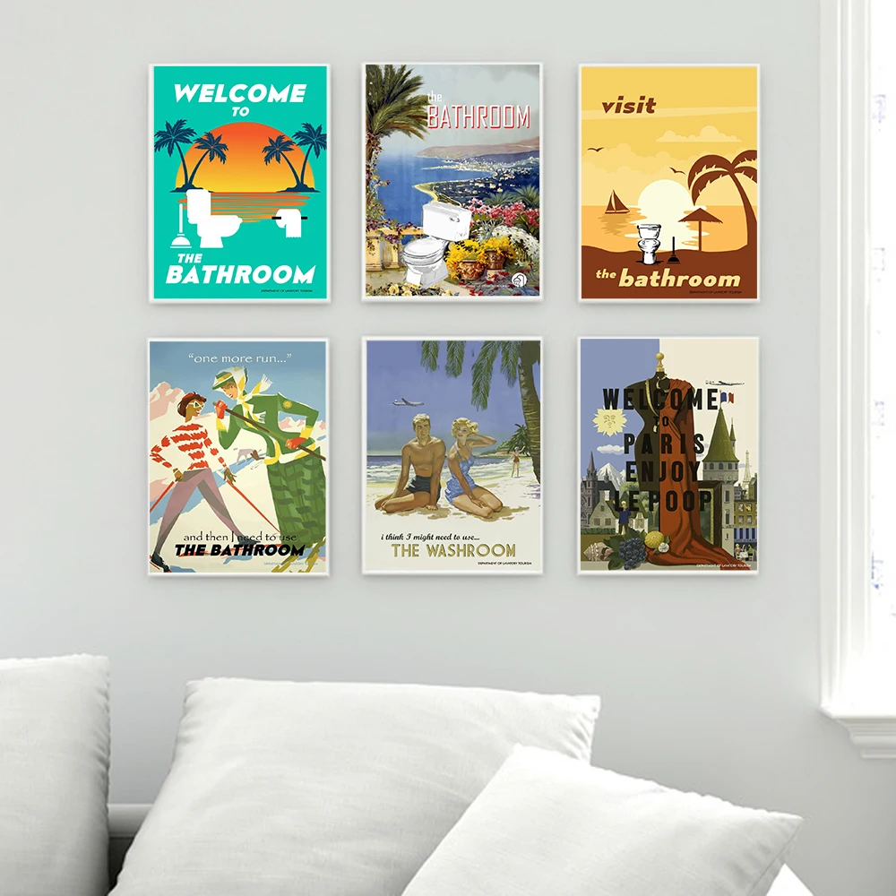 Настенные художественные плакаты с забавным принтом в ванную комнат...