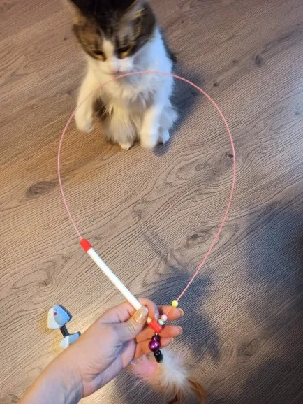 Качество очень хорошее! Мои кошки любят это, игрушка длинная