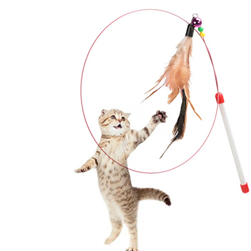 Интерактивная игрушка для кошек, палочка из нержавеющей стали, забавное перо с колокольчиком для котят, игрушечная палочка, товары для кошек