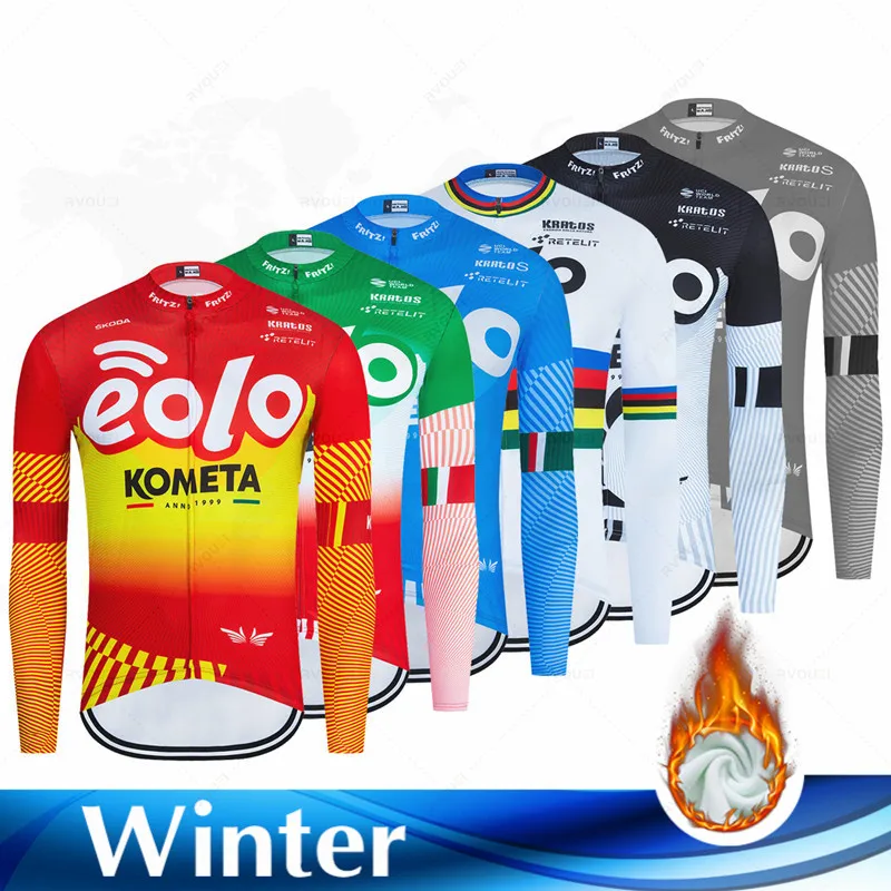 Зимняя велосипедная одежда 2021, велосипедная команда Eolo, велосипедная Джерси, Мужская велосипедная футболка с длинным рукавом, Термоодежда для горного велосипеда из флиса