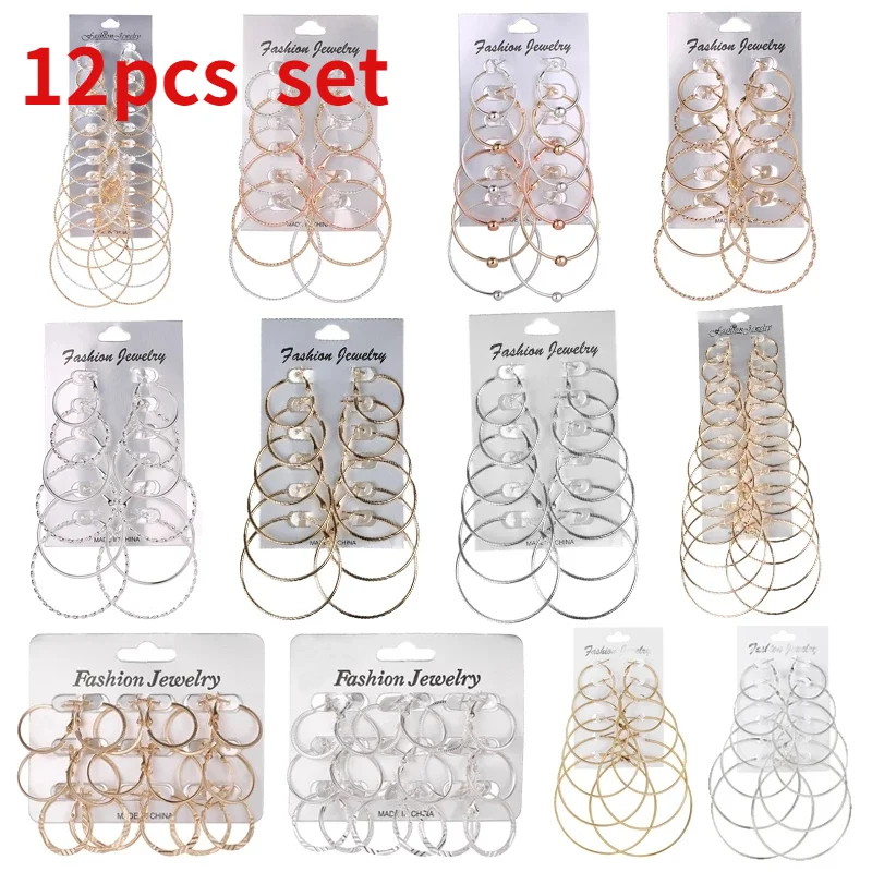 6 пар12 пар серьги-кольца в стиле панк набор большие круглые серьги...