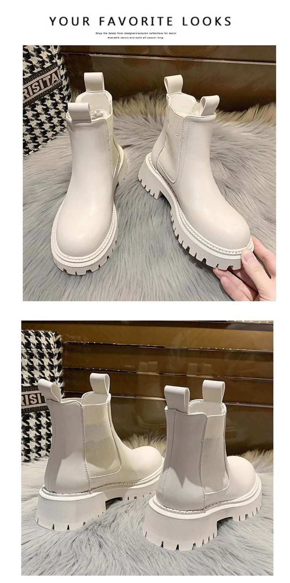 Женские ботинки челси на платформе, белые полусапожки на меху, коро...