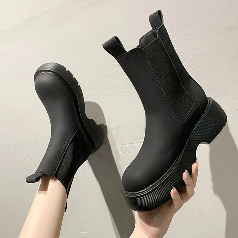 Ботинки женские осенние 2021 новые стильные эластичные ботильоны челси белые черные массивные ботинки на платформе удобная обувь с круглым носком