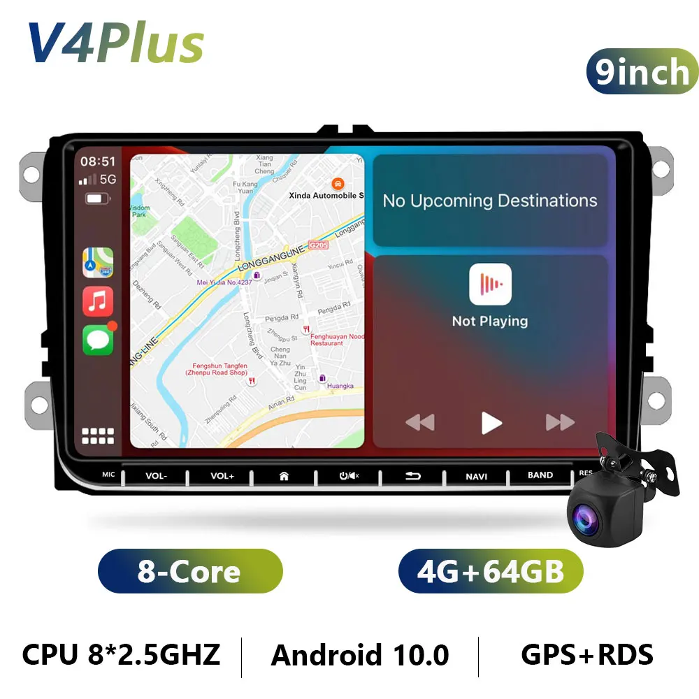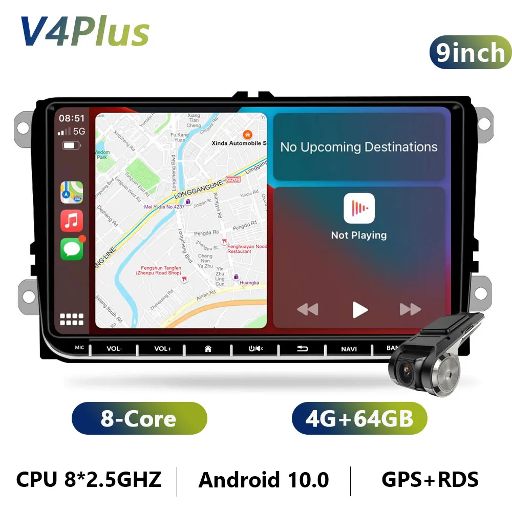 AMPrime 4G 8 ядер Android 10 2 Din Автомобильный Радио Мультимедиа Видео плеер для Фольксваген Гольф Поло Шкода Октавия Рапид радио мультимедиа плеер GPS радио