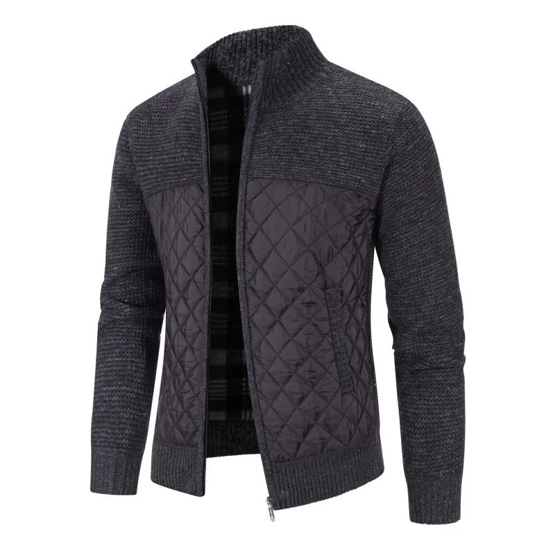 Осенне-зимний лоскутный свитер, пальто, мужской теплый кардиган на молнии, мужской повседневный трикотажный свитер, пальто