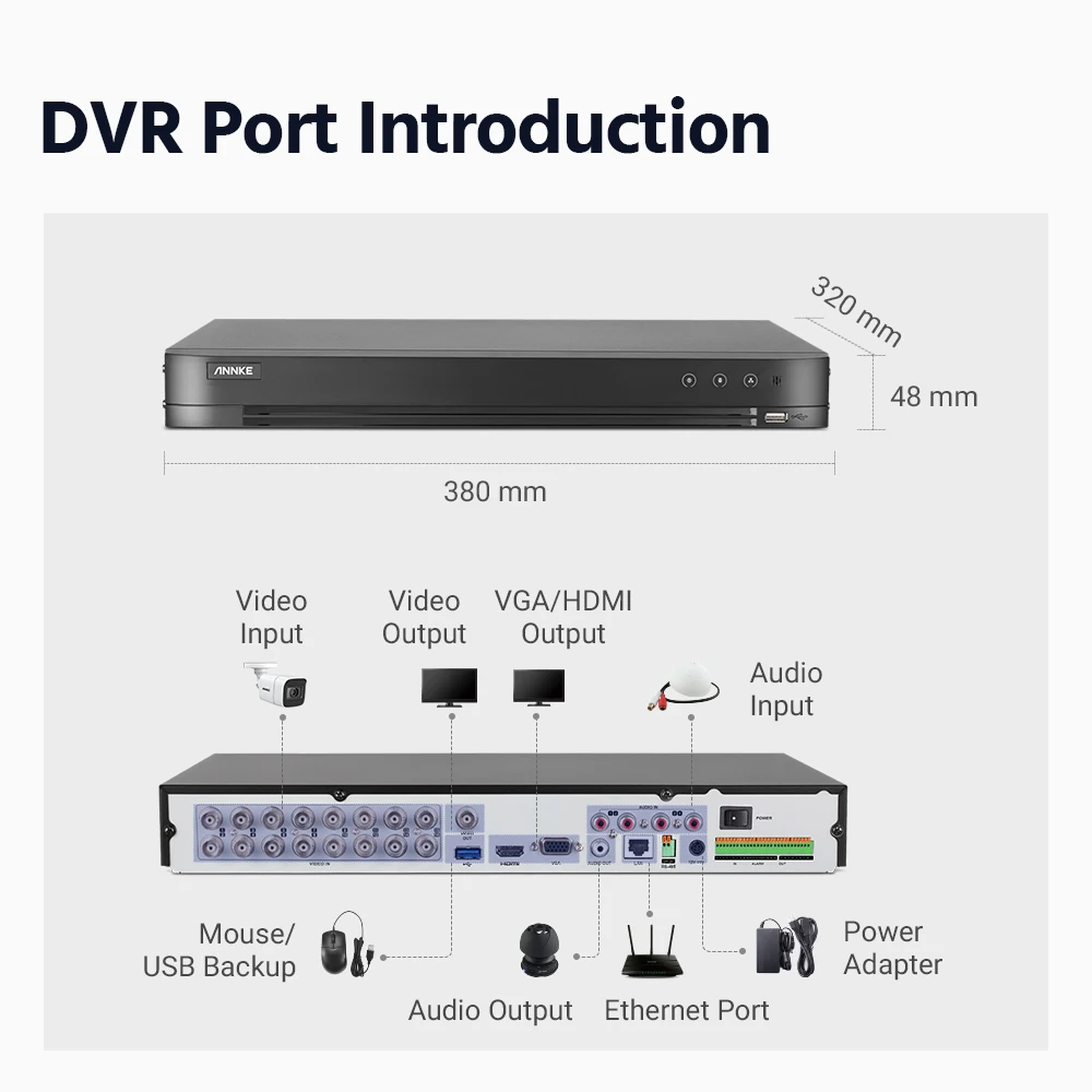 Система видеонаблюдения ANNKE Super HD, 5 МП, 16 каналов, H.265 + 8 МП