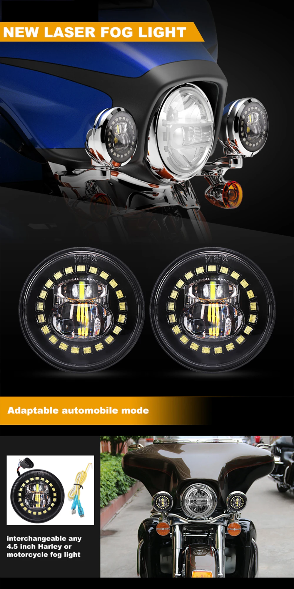 4,5 дюймов Новый светодиодный туман светильник для мотоцикла Harley