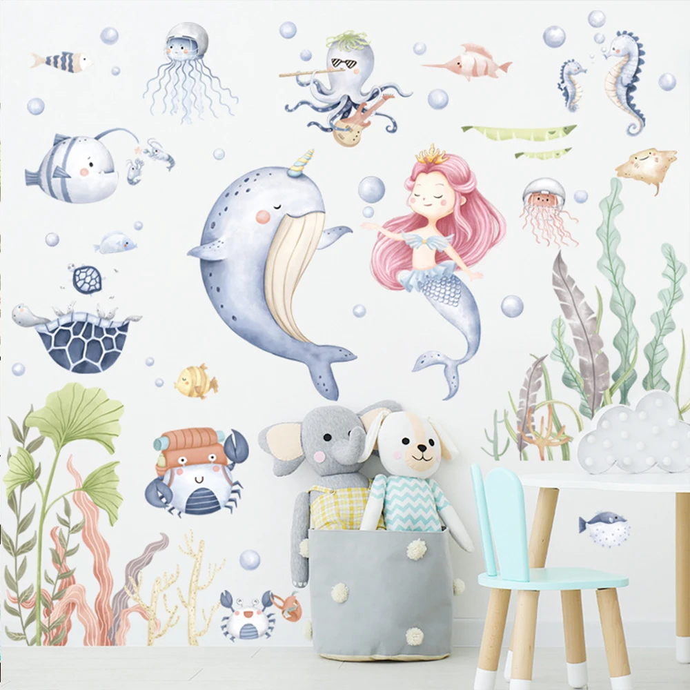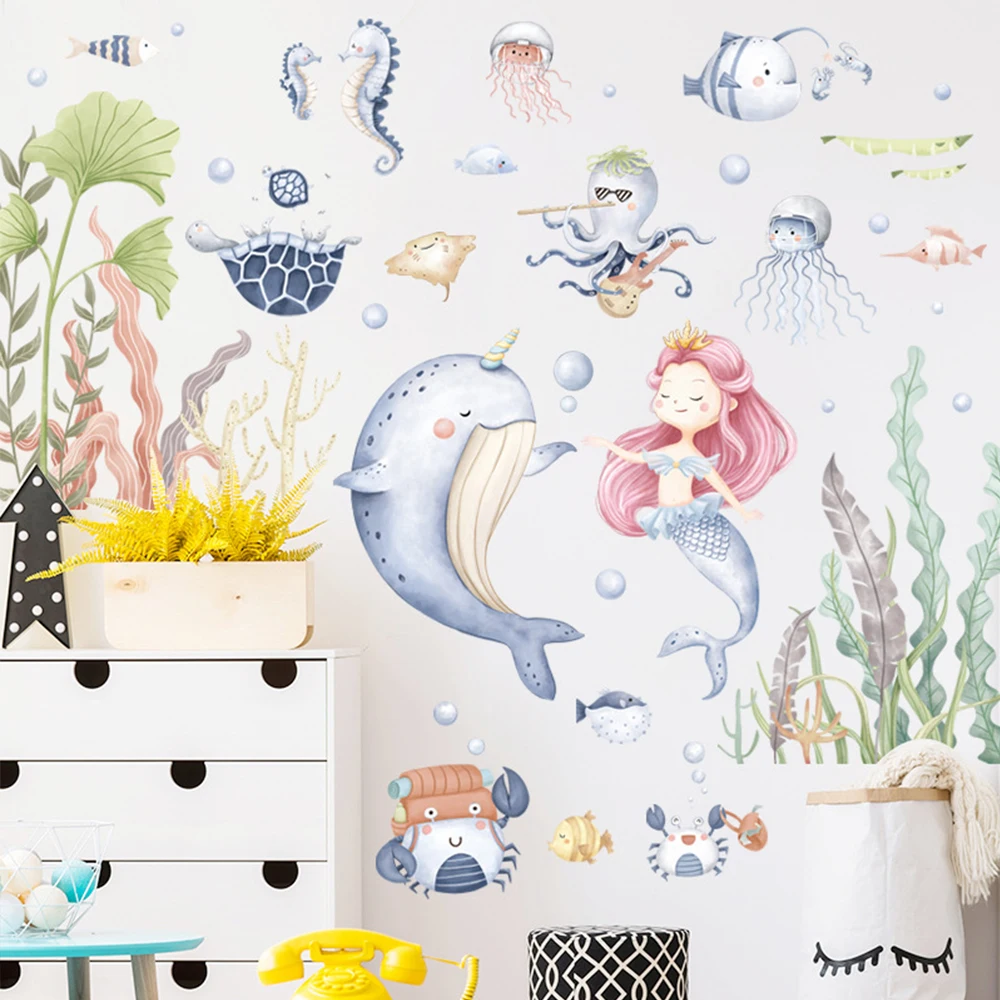 Мультфильм Русалочка ПВХ настенные наклейки для украшения дома Морская жизнь водонепроницаемые настенные наклейки художественные Настенные обои для детей спальня