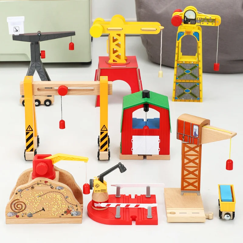 Деревянные подъемные краны, игрушки, деревянная железная дорога