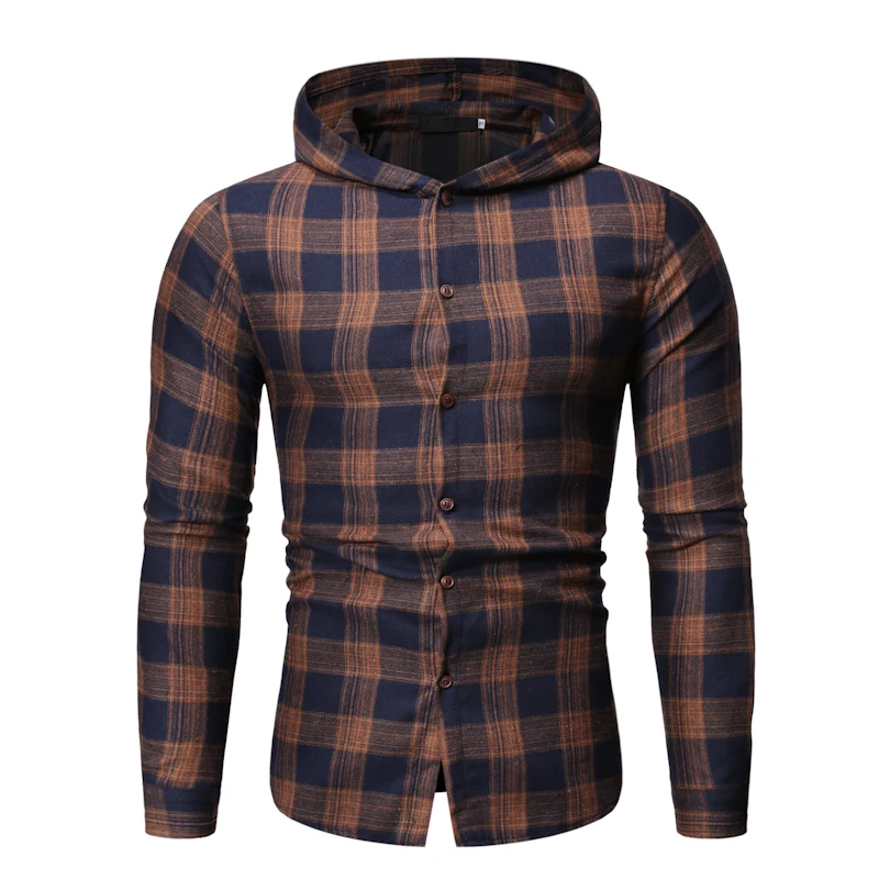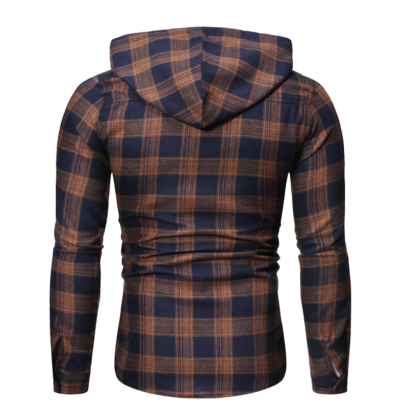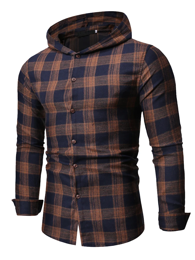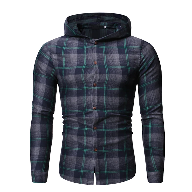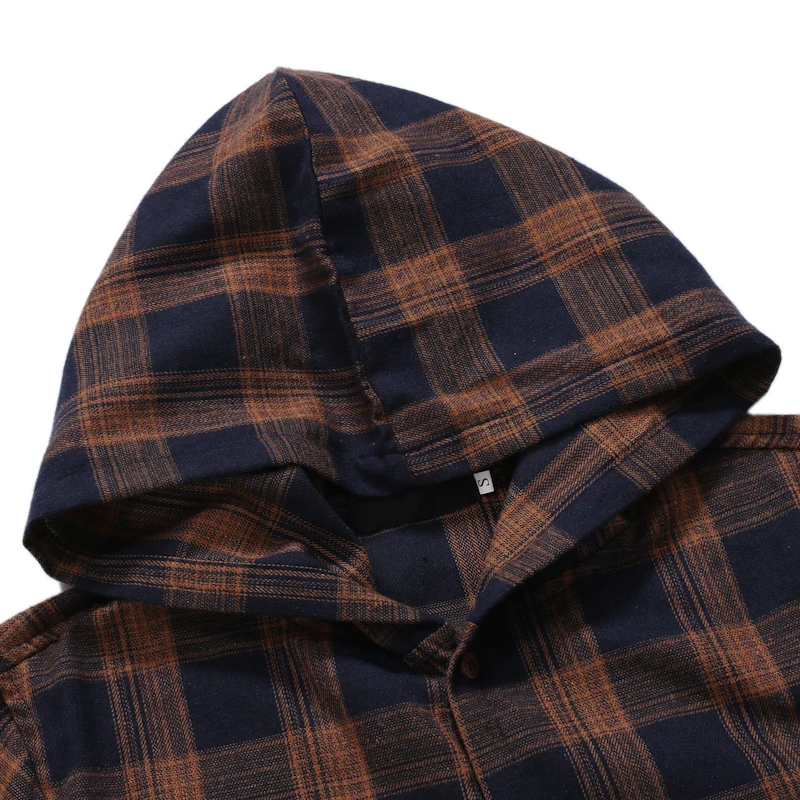 Рубашка мужская с капюшоном, в клетку, хипстерская, с карманами, 2021