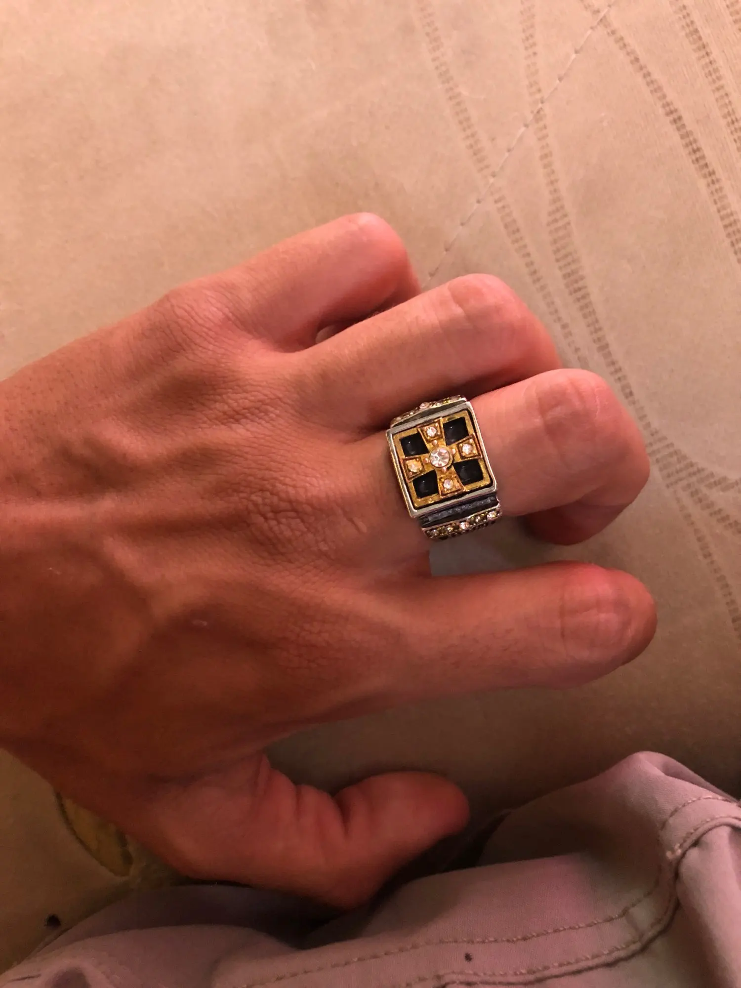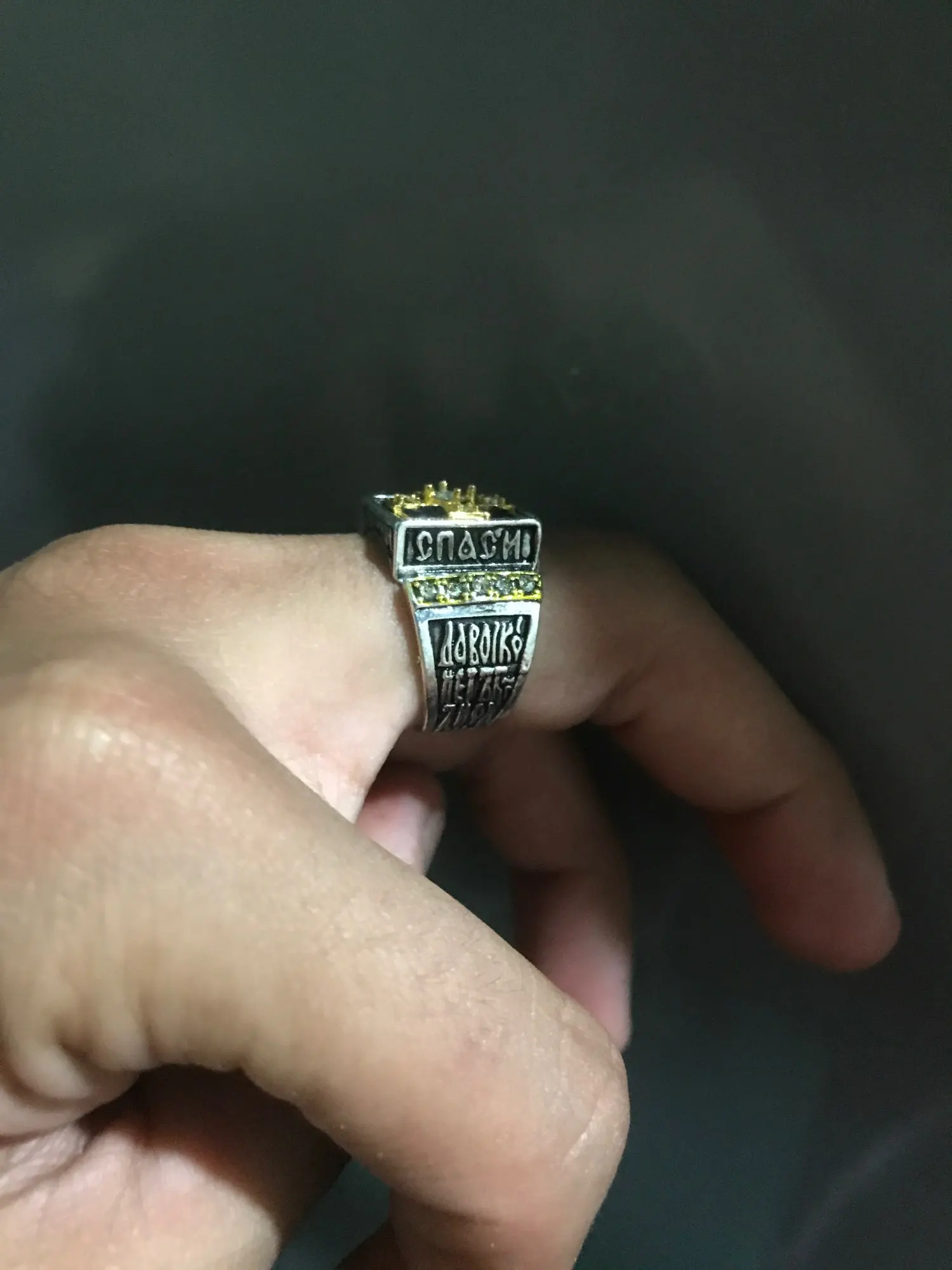Заказ шёл в Москву месяц и 3 дня, отправили заказ спустя 2 дня. Сам дизайн такой-же, как на сайте, а вот качество исполнения храмает. Заказала второй раз это кольцо, но в прошлый раз я была довольна, а сейчас нет. Жёлтый цвет на кольце это краска, а не митал! И в этот раз в центре окрашена только окантовка, да и то не ровно. Буквы все кривые, и не везде понятно, что написано... Такое ощущение, что это кольцо очень торопились закончить, поэтому на нём столько косяков. Вот честно недовольна в этот раз!!! Размер заказывала 10, а пришёл 9,5. Наш русский это 19, 5. Камни на месте. Но больше я тут брать не буду! Понятно, что деньги не виликие, но в прошлый же раз сделали красиво!!! Продавцу хочю сказать, что к клиентам которые заказывают ни раз, должно быть более внимательное отношение, что бы их не терять!!!