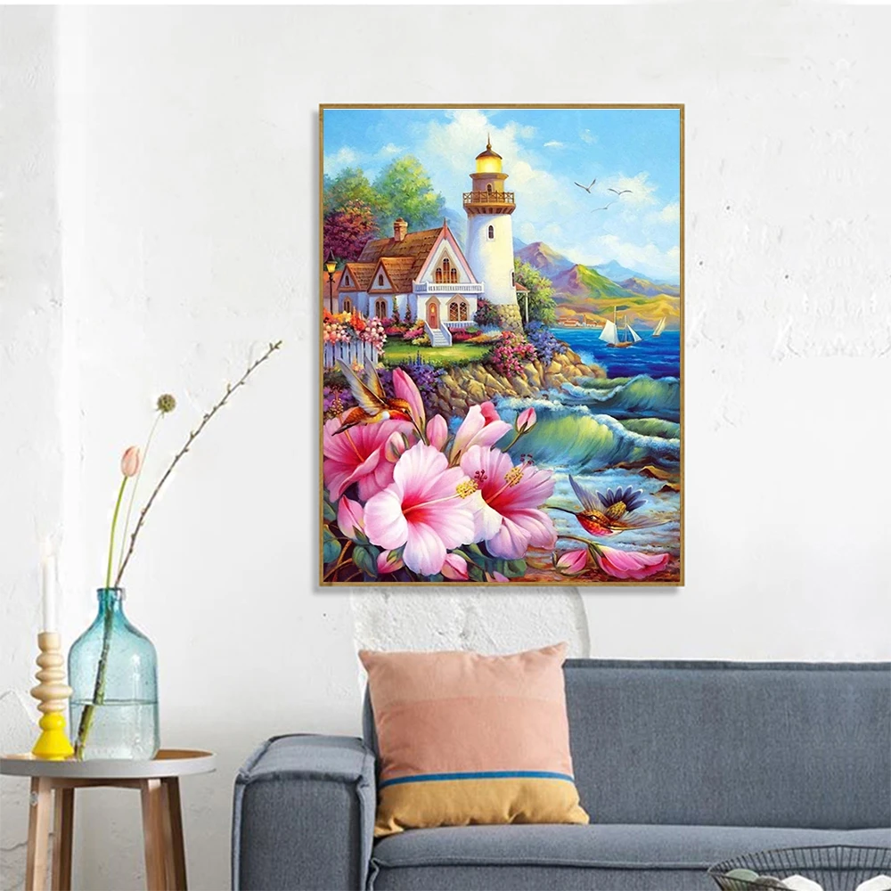 HUACAN картина по номеру Маяк рама для пейзажа Раскраска по номерам Цветок на холсте DIY Украшение дома DIY подарок