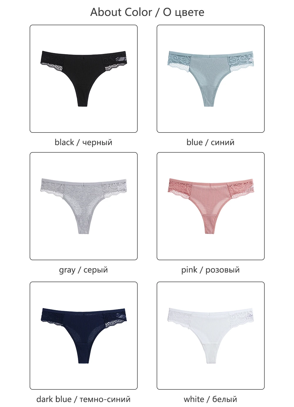 Стринги женские хлопковые, кружевные, с Т-образной спинкой, 3 шт.