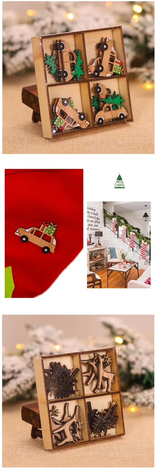 12 шт., Деревянные Подвески в виде Санта-Клауса, снеговика, лося