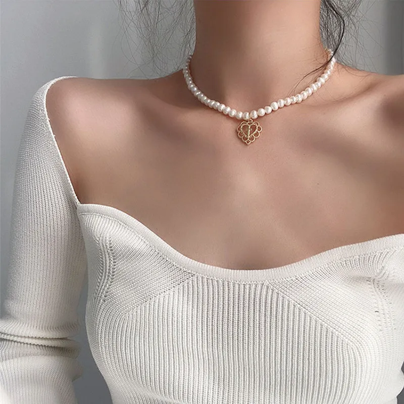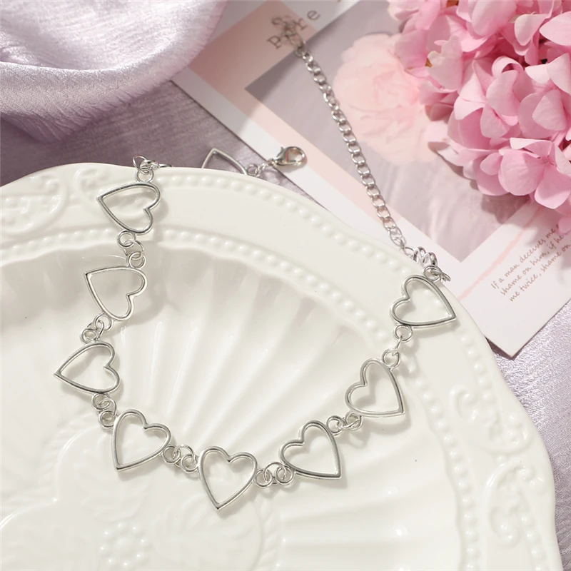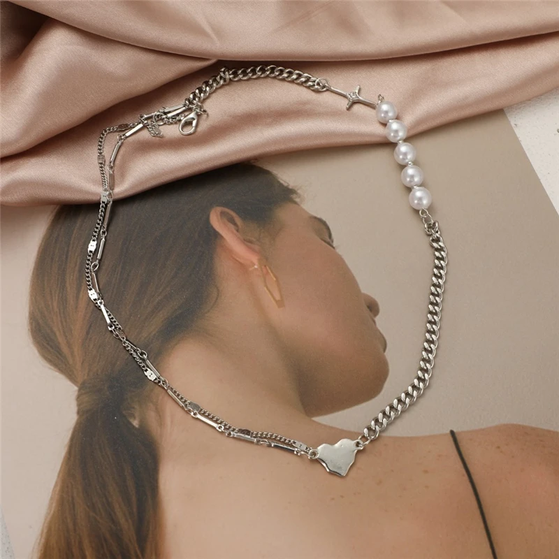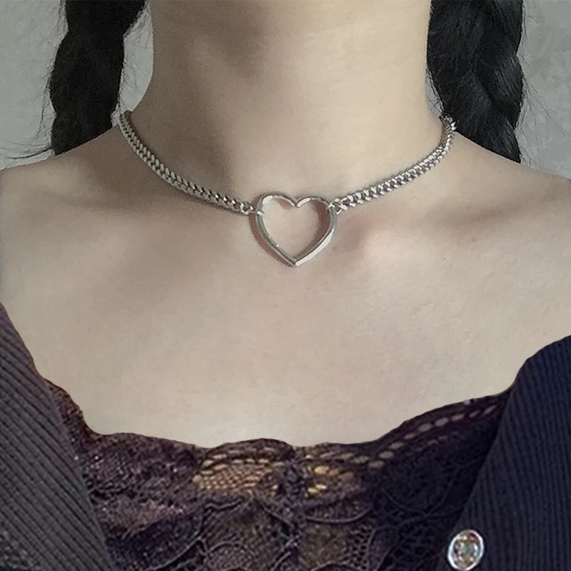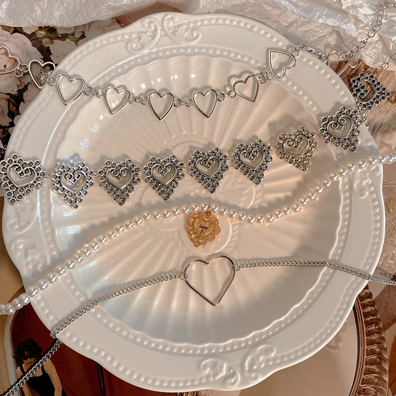 KPOP серебряный цвет сердца цепь колье колье для женщин мода эстетические жемчужные ожерелья ювелирные изделия рождественские подарки вечеринки