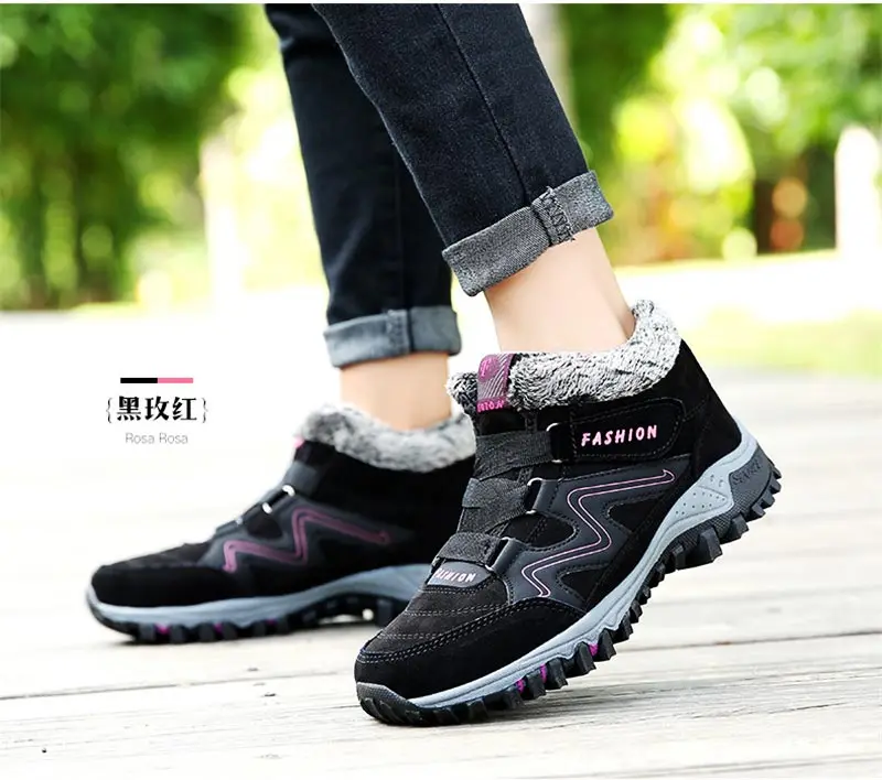 Большой размер, высокие теплые зимние спортивные туфли, женские кроссовки для подростков, спортивная обувь для женщин, обувь для бега, Черные искусственные меховые кроссовки