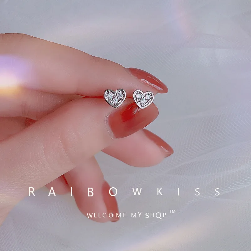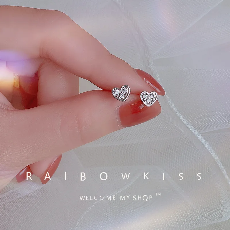 Женские серьги-гвоздики в форме сердца, с кристаллом из циркония