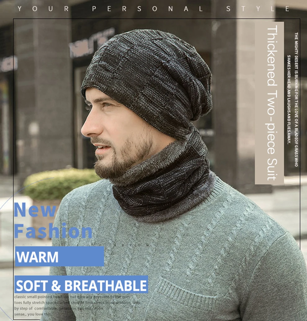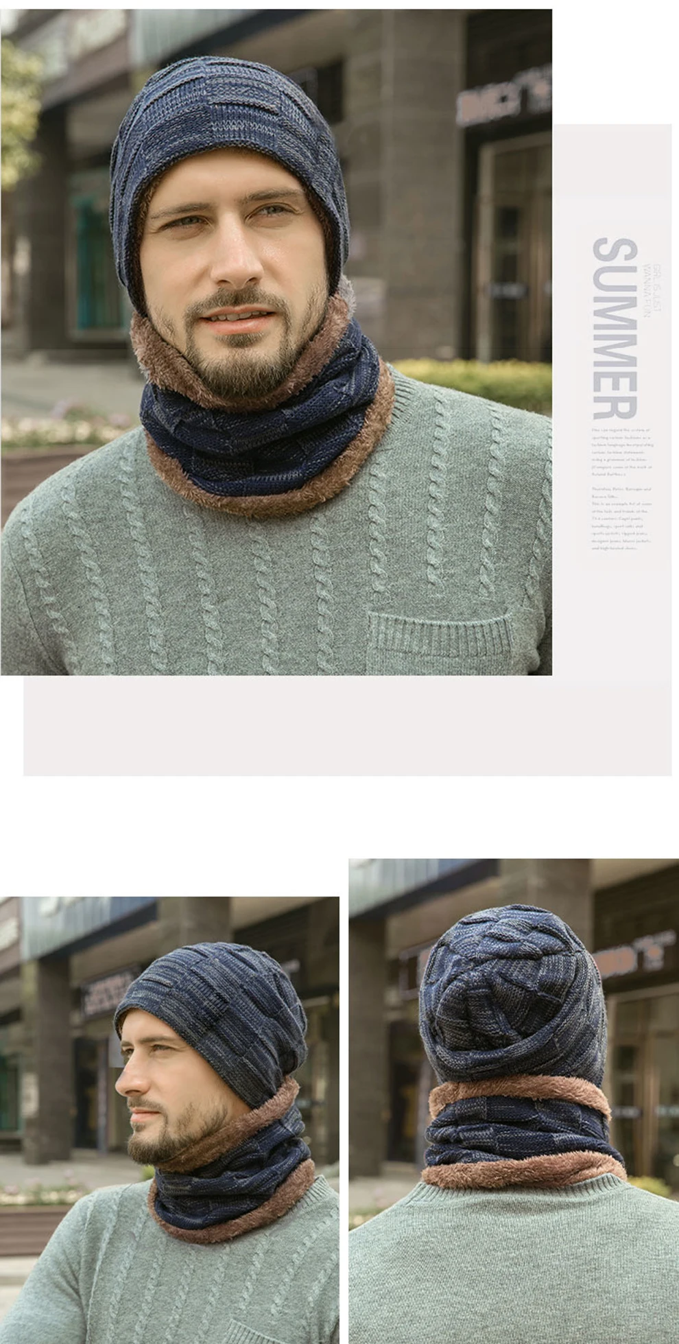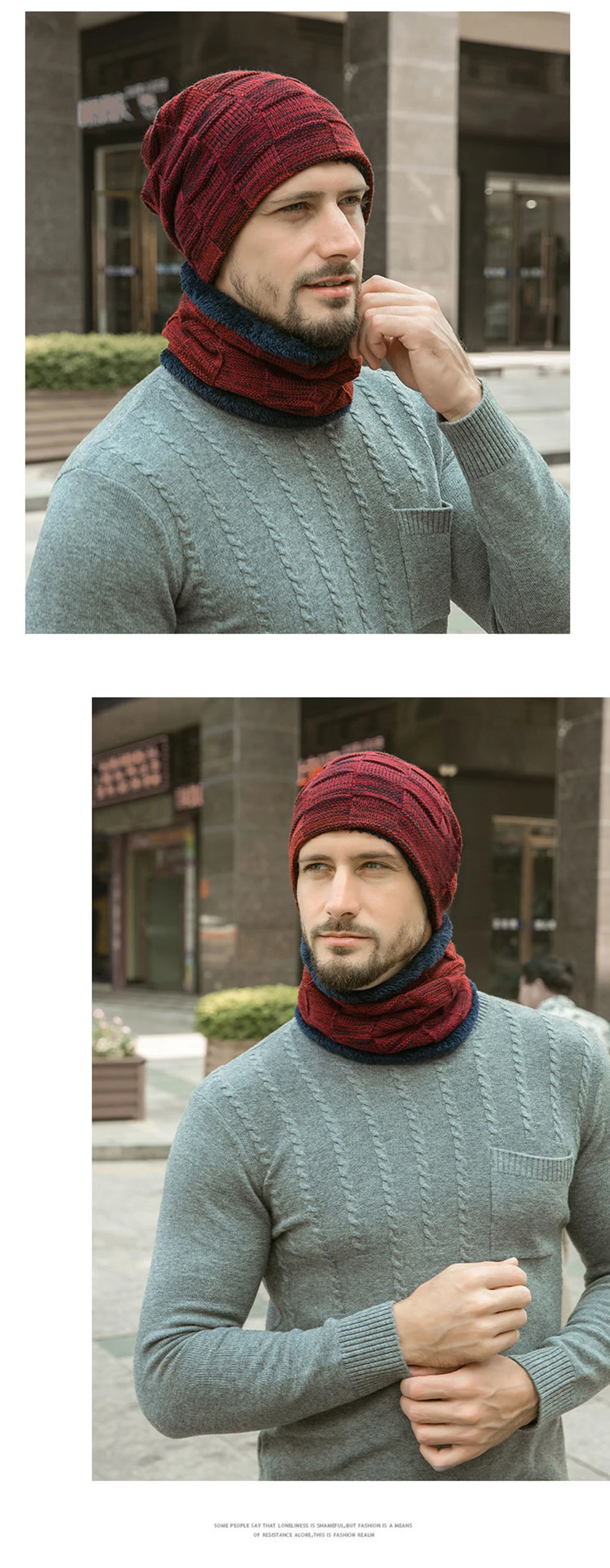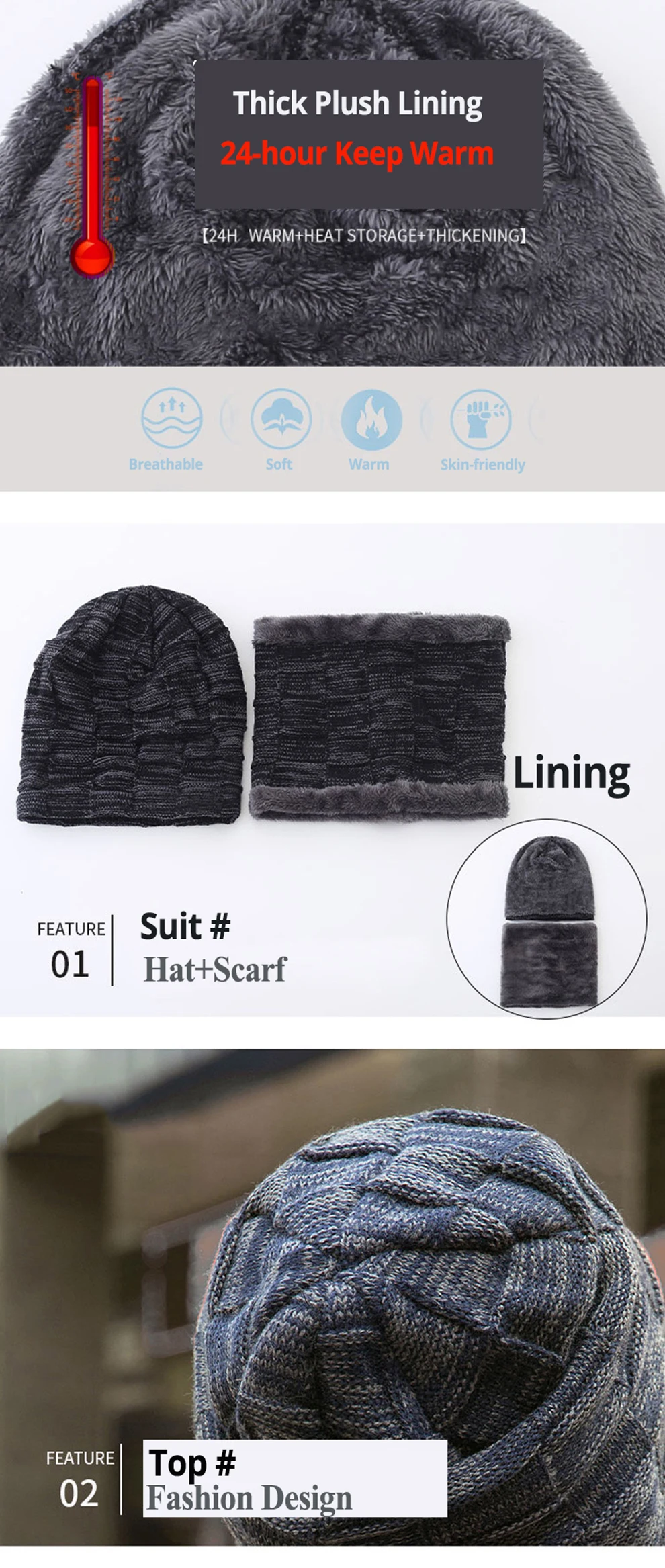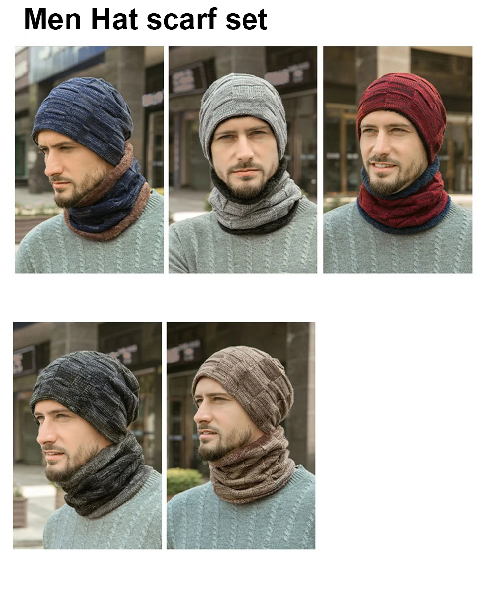 Зимний комплект из шарфа и шапки, теплая шапка бини для мужчин, вязаные шапки, бандана, походы, кемпинг, детская теплая шапка