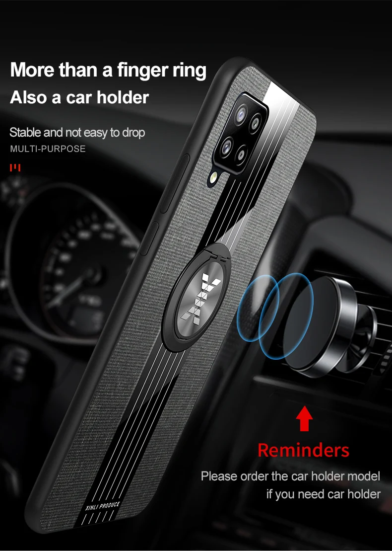 Чехол для Redmi 9 с кольцом-держателем, тканевая текстура, Жесткий ...