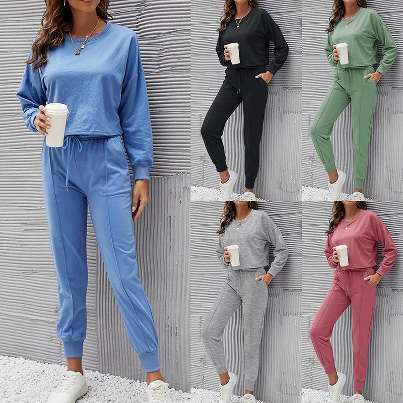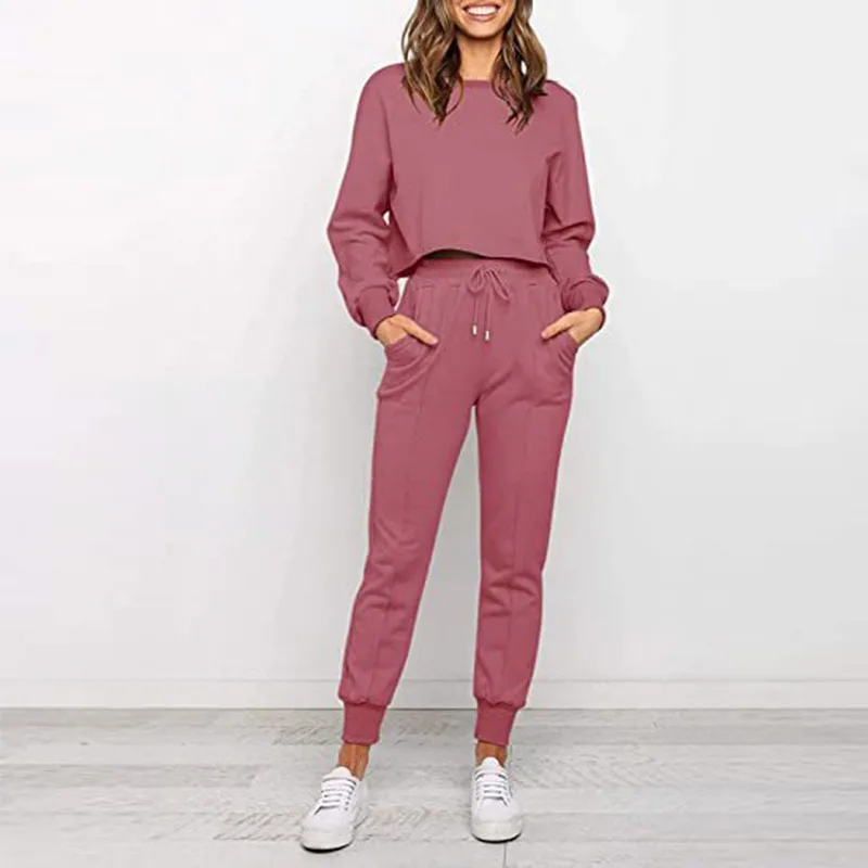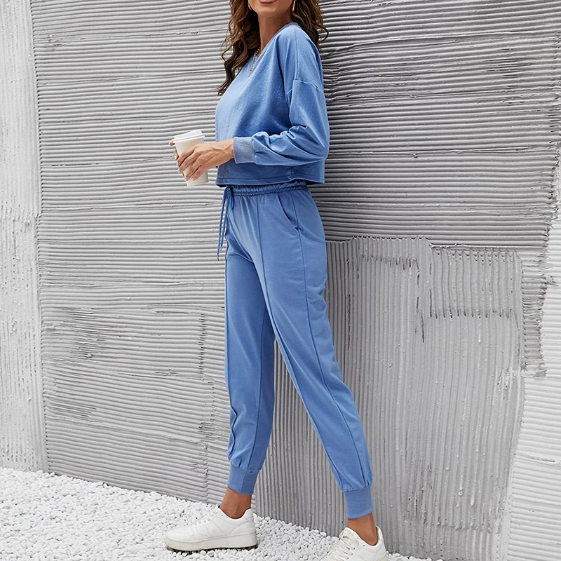 Спортивные костюмы, женская уличная Толстовка + длинные спортивные костюмы на шнуровке, повседневный однотонный комплект из 2 предметов, женская одежда, уличная одежда, спортивный костюм