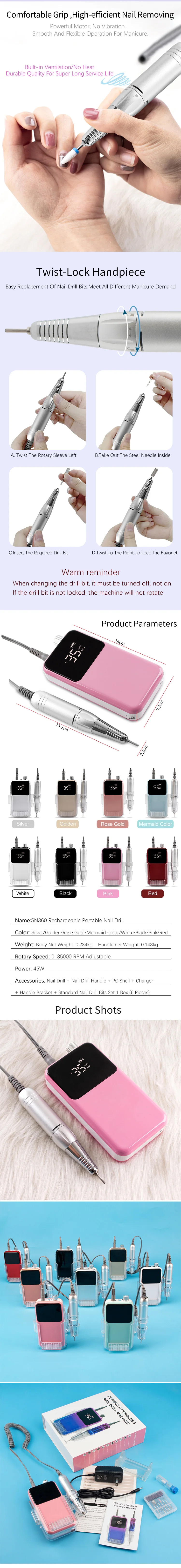 Профессиональная перезаряжаемая дрель для ногтей, 35000 обмин, элек...