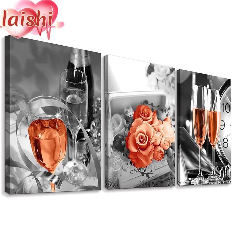 Набор для алмазной вышивки шампанское, цветы, винное производство, 3 шт.