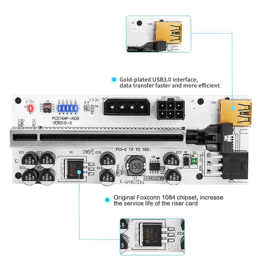 Адаптер-карта от 1 до 4 PCI-E USB3.0Особенности:1,4 Слоты обладает отличными extendability2. Подключается непосредственно к плате без какого-либо удлинителя кабеля, может быть закреплен на чехол3. Разъем PCI-E, дополнительный кабель питания не требуется4. Только один кабель к слоту, легко и удобно оседать и устанавливать5. С IC тепловым радиаторомВнимание:1. Это расширение применимо к разъему PCI - E 1X материнской платы, Пожалуйста, подключите шнур питания для дискеты. При подключении PCI - E расширение должно быть компьютер сломанной провода заглушка снова.2. Форма полного набора проволочного стержня настраивается, никогда не захватывайте леску для подключения. Помните об этом!3. Когда провод вилки должен определить направление, чтобы не противостоять или офсетные, предотвратить сжигание оборудования, подключите провод, когда розетка оборудования сначала, а затем подключите провод, Избегайте слишком жесткого штыря штепсельной вилки.Спецификация:Название типа: адаптер-карта 1-4 PCI-E USB3.0Цвет: синийМатериал: металл + пластикАвтобусный порт: PCI-EКоличество портов: 4 * USBРазмер: прибл. 120*65*58 ммПоддерживаемые ОС: для DOS, Linux, Windows XP/7/8/10Примечание:-Из-за нехватки исходного сырья и различных партий продукции, слот для карты и цвет кабеля будут иметь некоторые различия, но карта является той же функцией, пожалуйста, будьте уверены, что это не влияет на нормальное использование, надеемся на понимание. (Цвет s будет отправлен случайным образом!)-Возможны небольшие погрешности в размере при ручном измерении.-Отклонение цвета может отличаться из-за различных настроек монитора, пожалуйста, поймите.ФлуоресцентныйVER010-X переходная карта USB 3,0 PCI-EОписание:Очень подходит для установки горного оборудования Ethereum.Драйвер не требуется.4 отверстия на зажиме стоячего трубопровода используются для установки.Используйте светодиодный индикатор и f Используйте s на печатной плате.Блок питания видеокарты использует 8 твердых конденсаторов, чтобы сделать Электропитание видеокарты более стабильным и безопасным.Функция: 4PIN + SATA15PIN + 6PIN интерфейс делает графическую карту независимой от материнской платы, чтобы уменьшить нагрузку на материнскую плату. Это снижает нагрузку на материнскую плату при подключении нескольких графических карт.Стабильный: разъем PCI-E использует Многослойные экранированные кабели, которые могут быть подключены к максимуму 300 см без ослабления сигнала.Гибкий: кабель USB мягкий и стабильный, легко перемещается, и видеокарта может быть размещена по желанию.Исправлено: слот для карты оснащен фиксирующей пряжкой, что облегчает удаление видеокарты и фиксацию видеокарты, а видеокарта не отпадет от слота.Материал кабеля: шнур питания использует провод из чистой меди, чтобы избежать ожогов во время использования.Характеристики:ТоварНазвание: Переходная карта PCI-EЦвет: черный, красныйМатериал: PCB + металлРазмер: 123*47 ммМодель: VER010-X [8 конструкция конденсатора + несколько динамических рабочих индикаторов]Название: кабель расширения видеокарты PCI-E RiserПроизводительность продукта: удлинитель видеокарты 6PIN интерфейс (16A мощность источника питания) для увеличения источника питанияИнтерфейс: PCI-E 16XUSB кабель: 60 смПоддержка системы: для Liunx / xp / win7, 8, 10Примечание:1. Этот Удлинительный кабель подходит для материнских плат с разъемами PCI-E. При использовании вставьте шнур питания 
