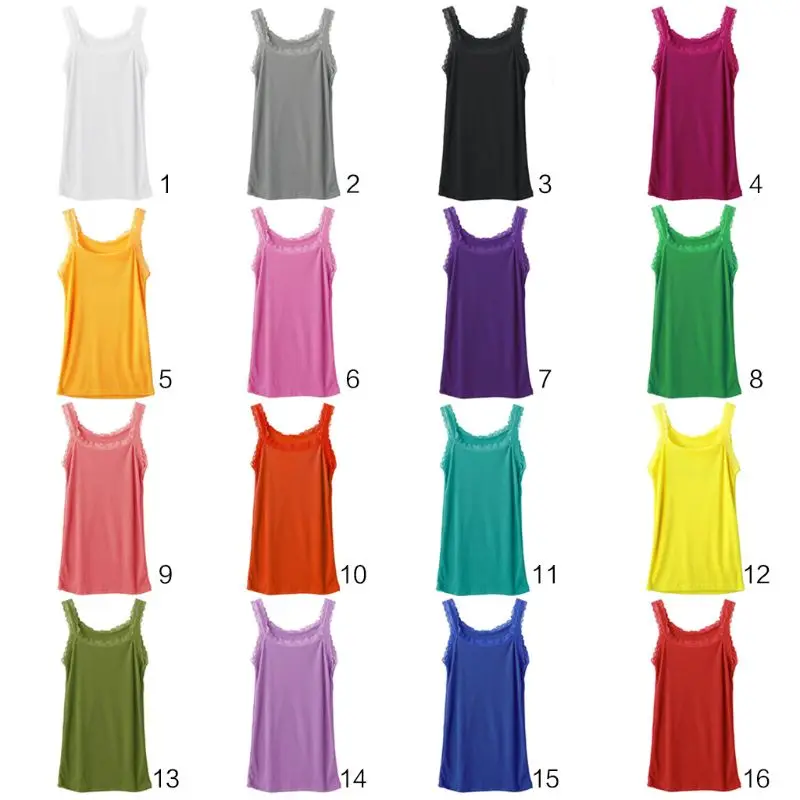 Майка женская трикотажная, летняя, однотонная, ярких цветов, кружевная