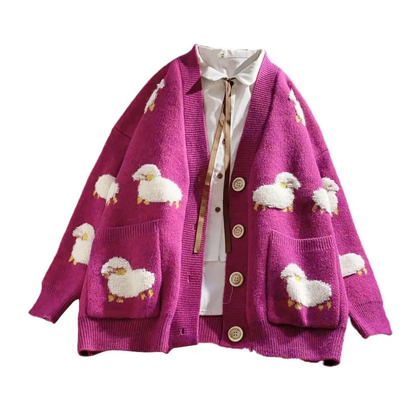 Женские вязаные свитера, милый кардиган с вышивкой овечьей шерсти, ...