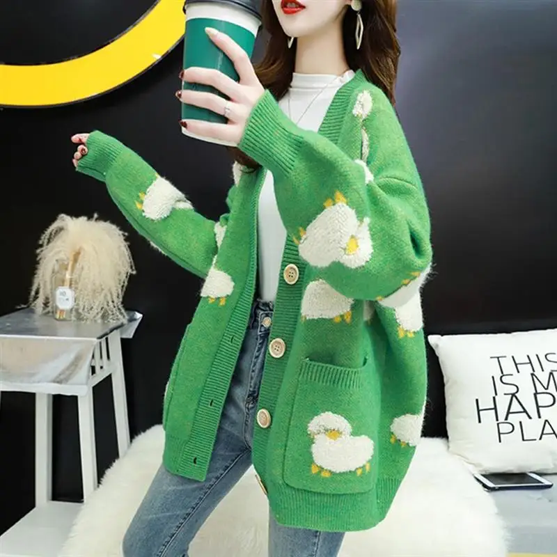 Плотный свитер Neploe, пальто, Женский вязаный кардиган с мультяшны...