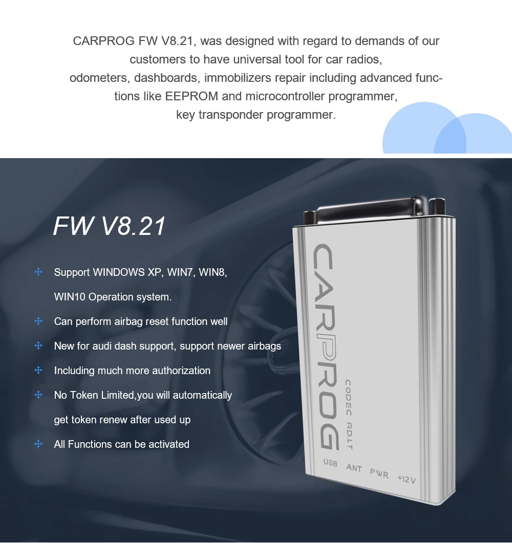 Carprog FW V8.21 полный комплект подушки безопасности: