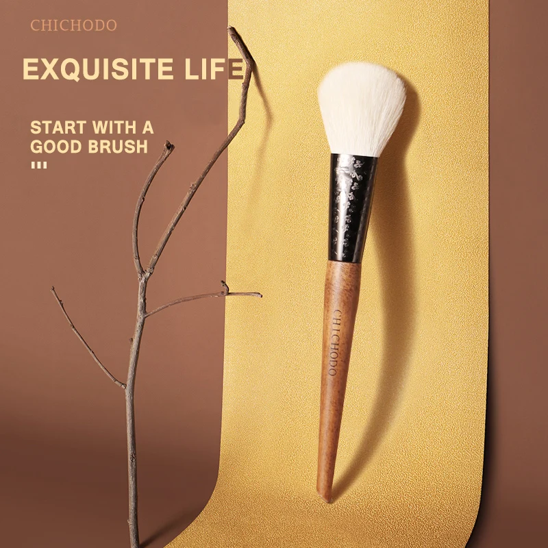 Кисть для макияжа от CHICHODO Otticial Store. Кисть приехала в РБ меньше чем за месяц. Упакована была в сеточку. У кисти мягкий натуральный ворс из козьей шерсти, качественная деревянная ручка, которая удобно лежит в руке. На ручке имеется логотип (надпись бренда). Кисть плотно набита ворсом. Длина кисти 19см., длина ворса 4.5 см. Такой кистью можно работать, как с сухими, так и с кремовыми (жидкими) текстурами. Качество помимо ворса - просто пушка! Очень довольна этой кистью. Берите не пожалеете. Этот бренд не подводит никогда!