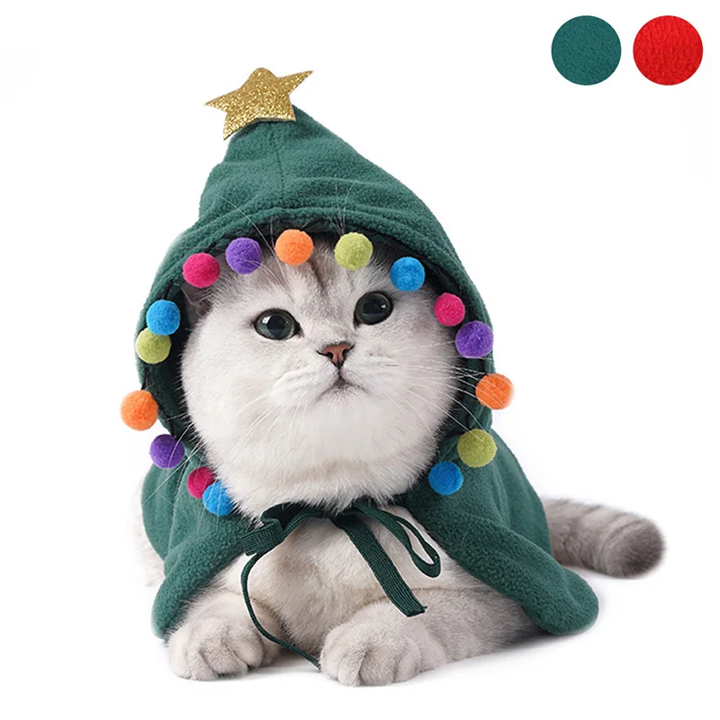 Рождественский костюм для кошек, собак, Санты, новогодняя накидка, Рождественская теплая одежда для котенка, наряд для щенка, шарф для питомца, плащ, макияж
