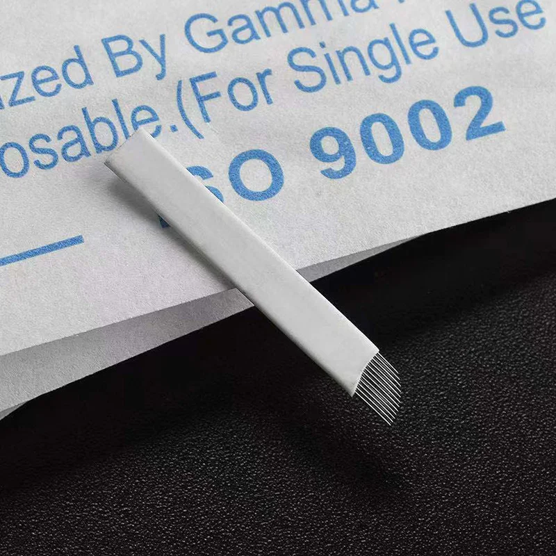 Белые иглы для микроблейдинга для татуировки Lamina Tebori, 12 гибких штифтов, лезвия U-образной формы, лезвие для перманентного макияжа, ручка для татуировки, 50 шт.