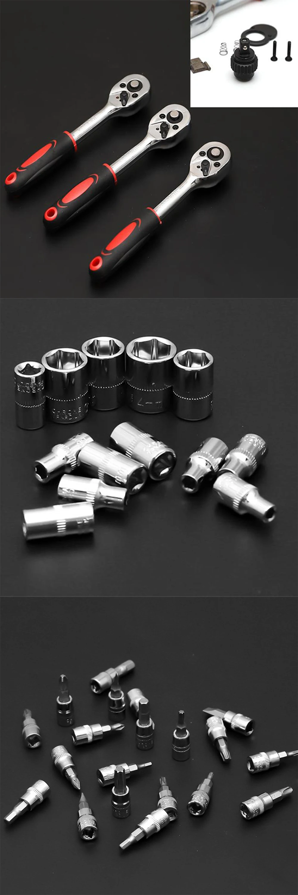 Спецификация:T10/T15/T20/T25/T30/T40H3/H4/H5/H6/H7/H8S4/S5.5/S7PH1/PH2/PH3PZ1/PZ2/PZ3Гнездо: соединитель1*1/4 ''Гибкая вертушка ручка1*1/4 ''вертушка ручка1*1/4 ''трещотка ручка2 * удлинитель: 2 ''+ 4''1 * универсальный шарнир3 * шестигранный ключ: 1,5-2-2,51*1/4 ''6'' эластичный стержень1 * AD Электрический шарнирХарактеристика:1. Прочный Материал: изготовлен из углеродистой стали для долговечности, не токсичен и не ржавеет.2. Портативный: все инструменты, содержащиеся в прочном, пластиковый чехол для удобства хранения и транспортировки, сохраняя инструменты и аккуратно и удобно для вас, чтобы получить доступ к инструмент, который вам нужен.3. Ручка гаечного ключа: с нескользящей ручкой для удобного, эргономичного захвата при использовании.4. Широкое использование: отлично подходит для большинства небольших ремонтов и основных DIY проектов дома, гаража и мастерской. Для ремонтников, строительных работников, механиков и так далее.