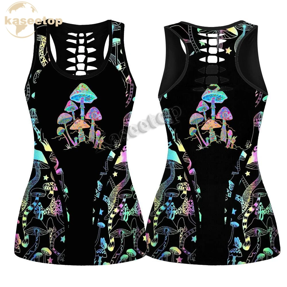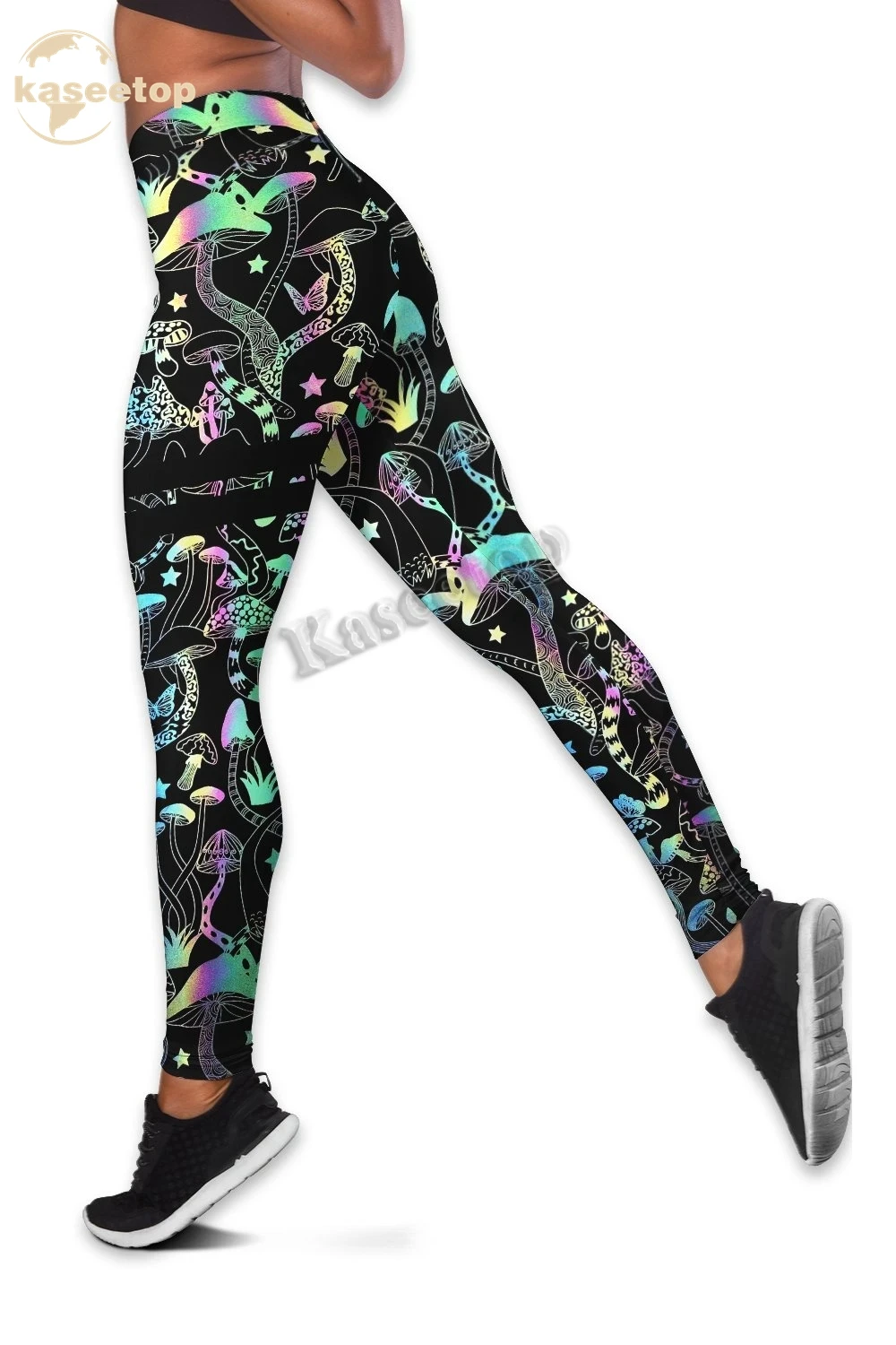 Kaseetop, Светоотражающий Комплект из двух предметов для йоги в виде грибов, женский жилет с 3D рисунком, летний повседневный комплект из двух предметов, LK57
